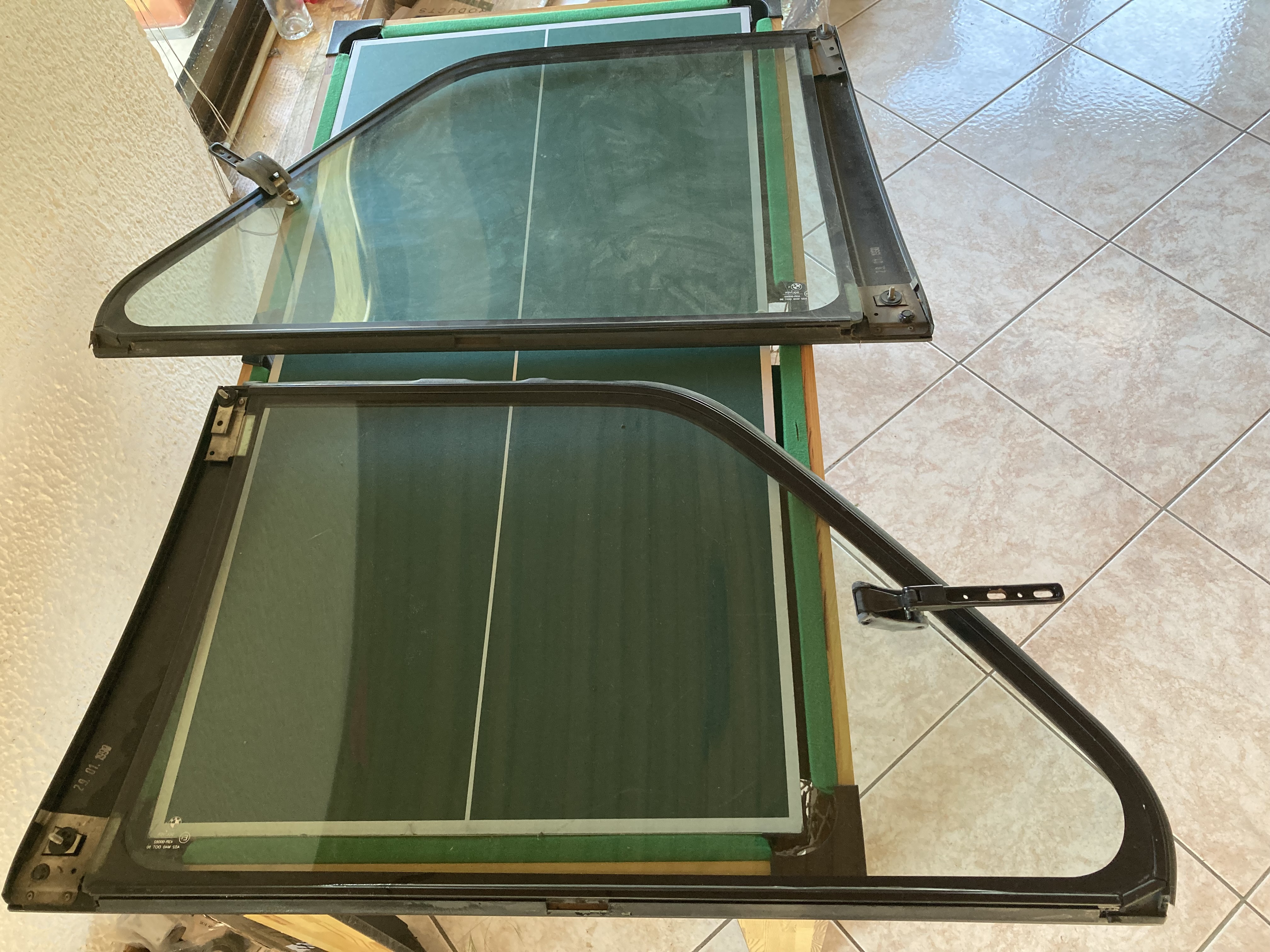 prodaja se bombončk, ki gre na vsakega coupeja. Torej naprodaj pop out stekla po naše tudi škrge/leptiri. So shadowline izvedba, ki so bila izdelana v 31 let nazaj. V super stanju, skupaj z panti-kar je vidno na sliki. Manjkajo dve okrasni plastiki plastiki, ki pokrijejo vijake ko se panti pritrdijo na karoserijo.