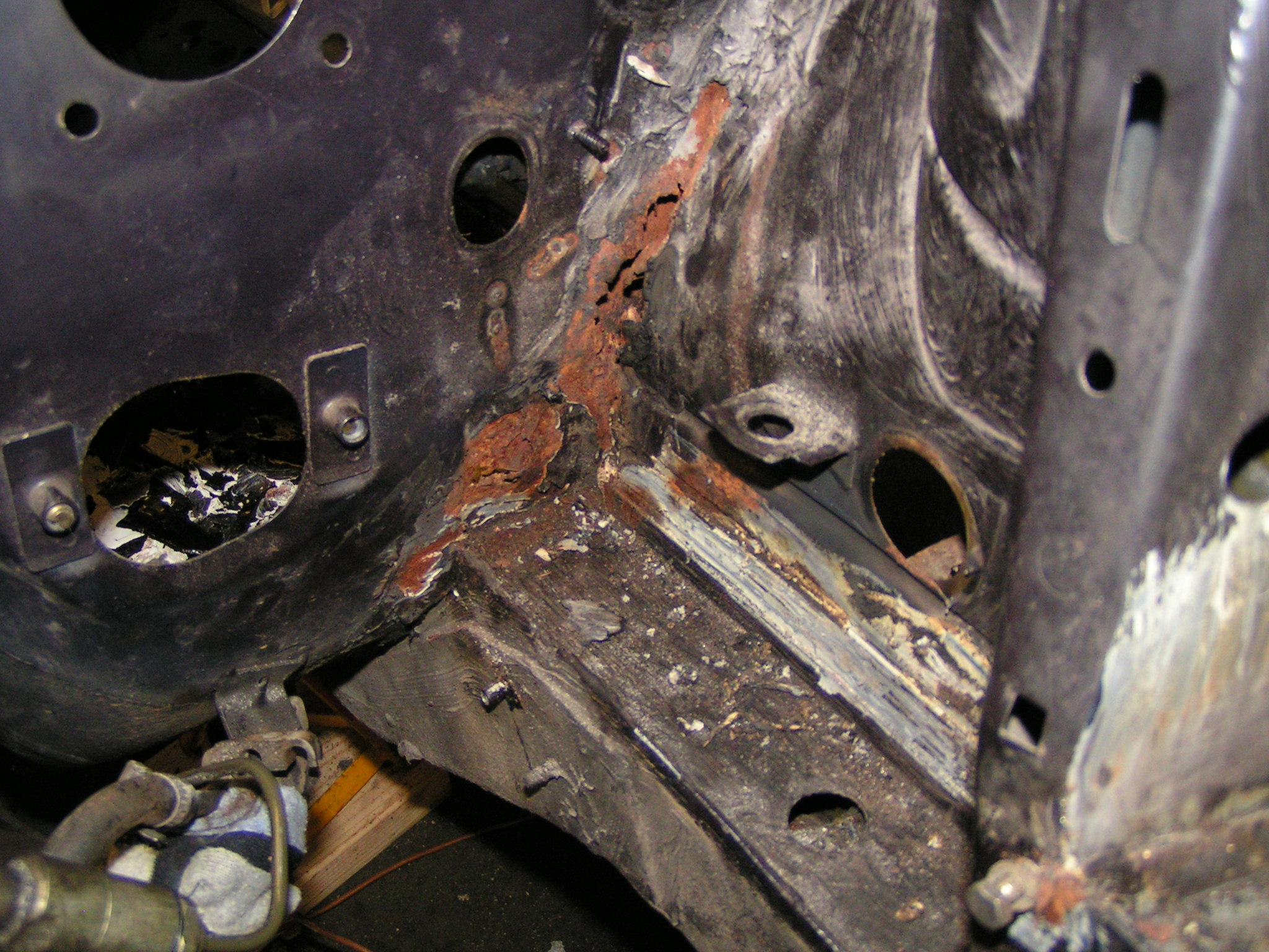 Velikokrat začne rjaveti za pritrdilnimi mesti kolotečne plastike. Pa tudi v samem kraku znotraj pri lučeh. Začetek korozije je tam viden že, če pogledamo v motornem prostoru skozi stranske luknje kraka.
