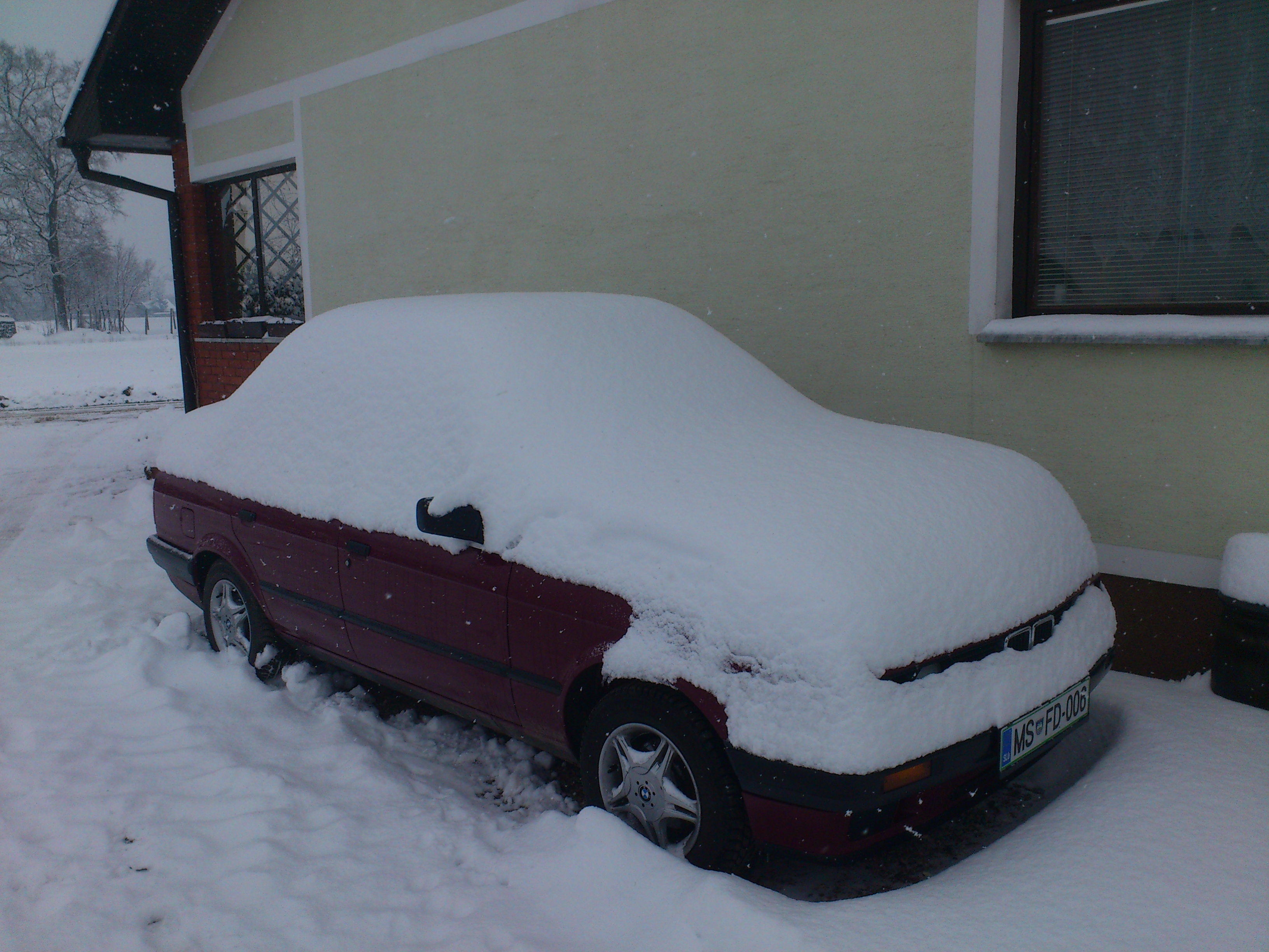 :-? No, še sam sem mu včeraj dal mal snega za povohat..samo po dvorišču, pa še to je bil problem. Letne gume, nizka teža, še posebej nad pogonskimi kolesi, pa še nič peska ali soli po tleh :)