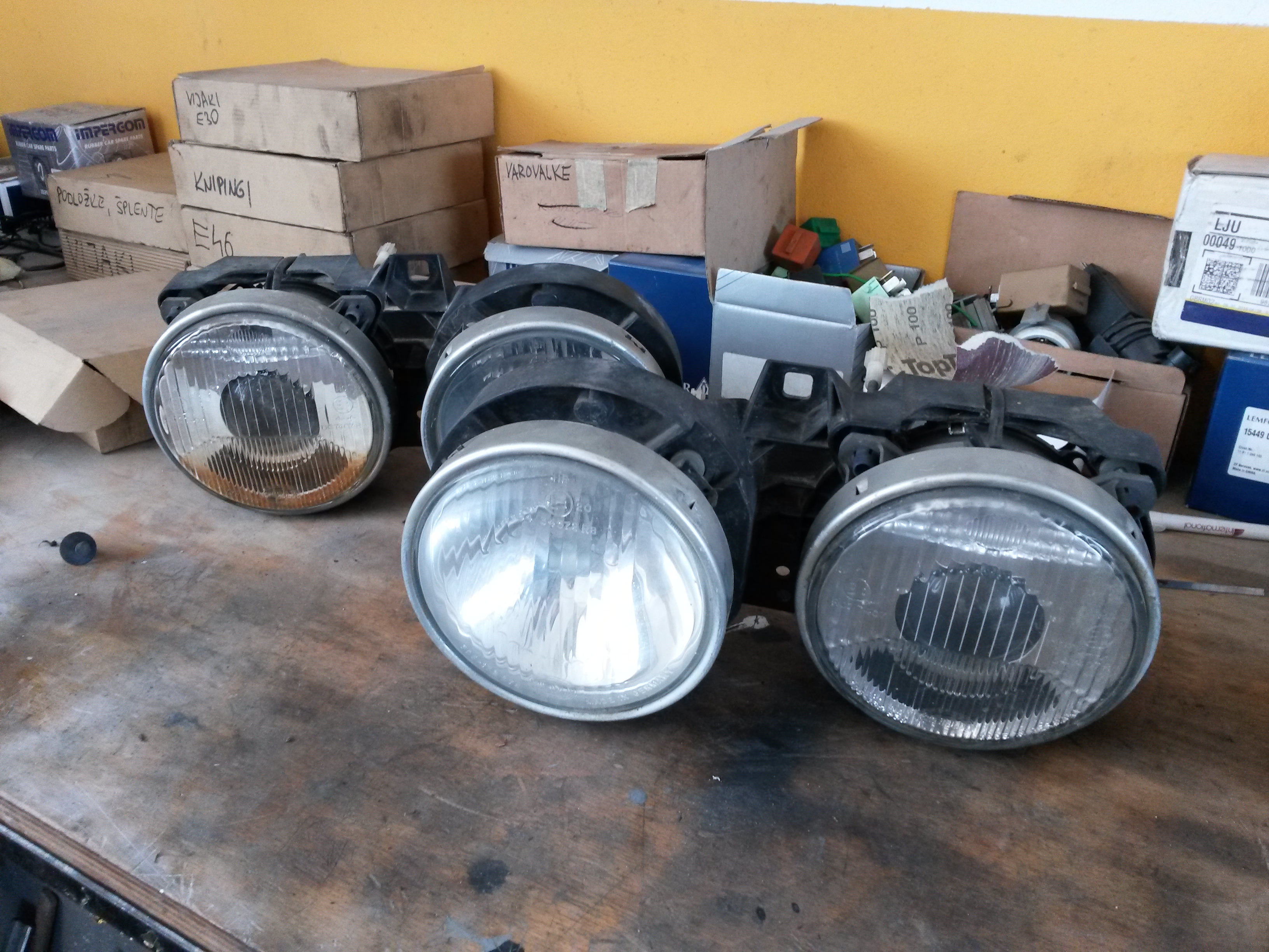 Prvo kar potrebujemo so seveda prednji žarometi, ki bodo osnova za predelavo. Za original izgled se uporabi hella facelift žaromete, je pa postopek ubistvu enak tudi pri bosch in pfl žarometih. Pri slednjih se lahko v kratkih in dolgih lučeh uporabi križce. To je tudi druga stvar, ki jo potrebujemo, a več o tem kasneje.