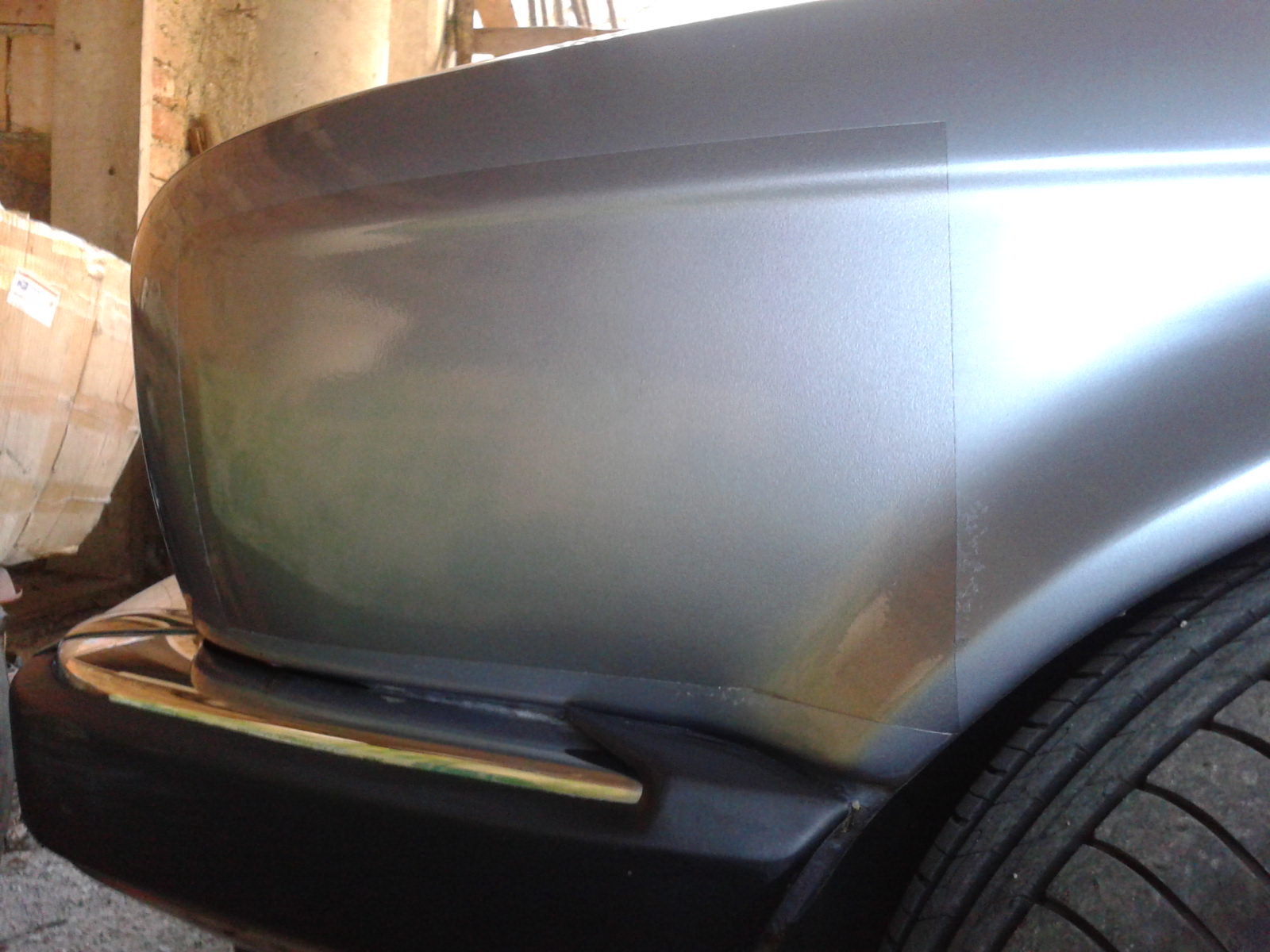 Ja, res je, vendar pa je kompleten avto bil pred manj kot dvemi leti kompletno prebarvan. Sem bil siguren, da bo barva po kodi morala štimat, pa očitno ne bo tako... Na žalost je bilo barvanje avta slabo opravljeno in bo očitno tudi cela umetnost spravit ven fleke, kjer se je barva odluščila... Ta blatnik moram pa itak dol vzet in odbrusit rjo s spodnjega roba, zaščitit in na novo poštrihat. Bolj mi je bil cilj videti sam odtenek direkt na avtu.
