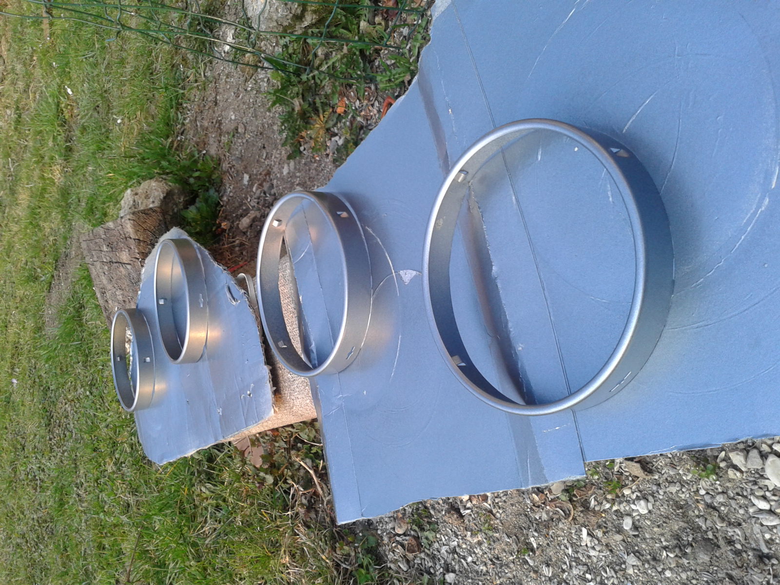 Danes sem si vzel čas za obnovo predhodno speskanih obročkov, ki pridejo okrog prednjih luči. Ker sem poskusno prekril flek na prednjem levem blatniku z barvo, mešano v Mavrici (prodajalna barv op.p.), sem se odločil, da tudi obročke dam v barvo karoserije. Sicer s samim odtenkom zaenkrat nisem povsem zadovoljen, saj se zdi da je malo temnejša od osnove. Bom pa videl po poliranju, koliko je dejanske razlike.
