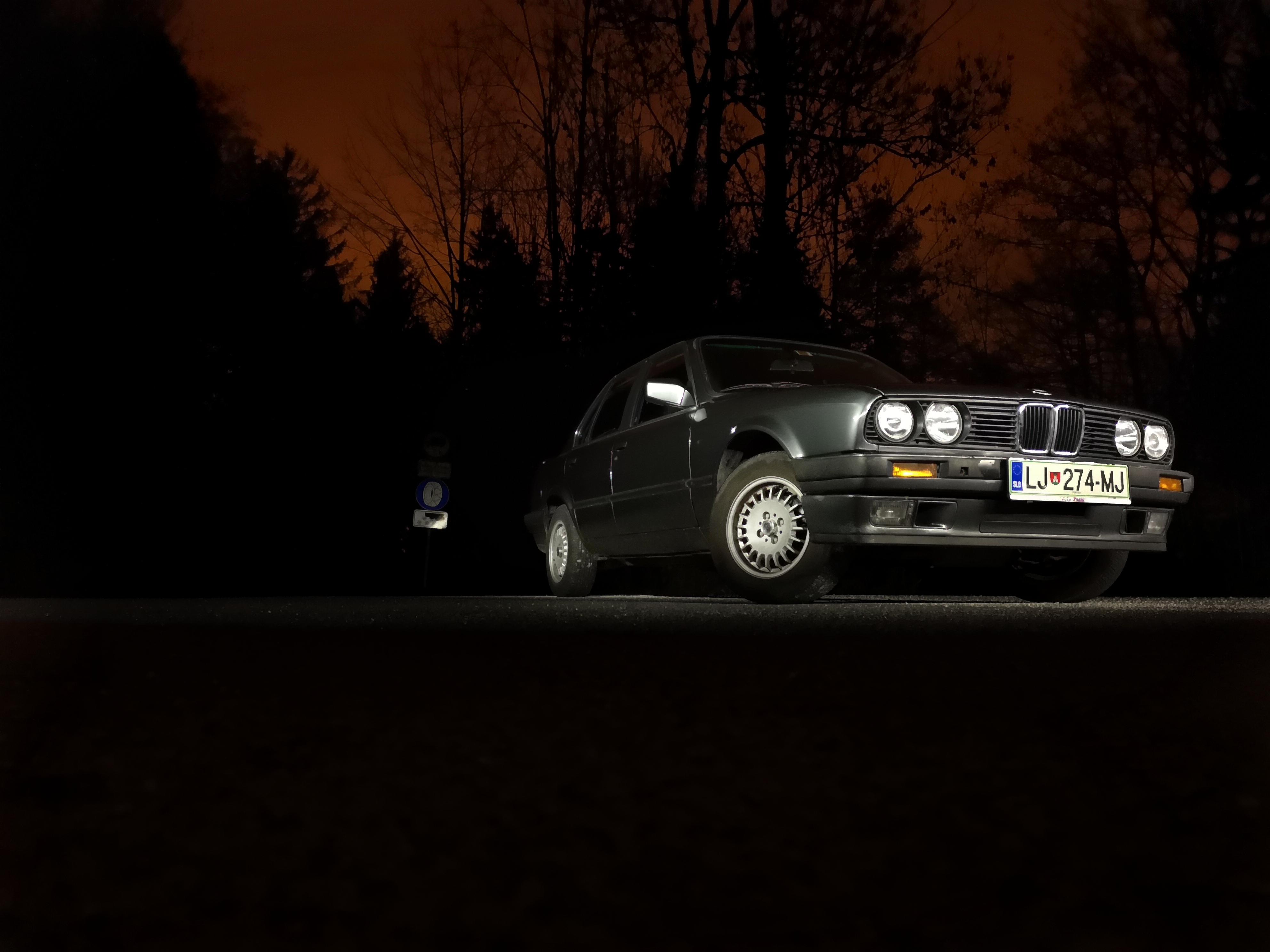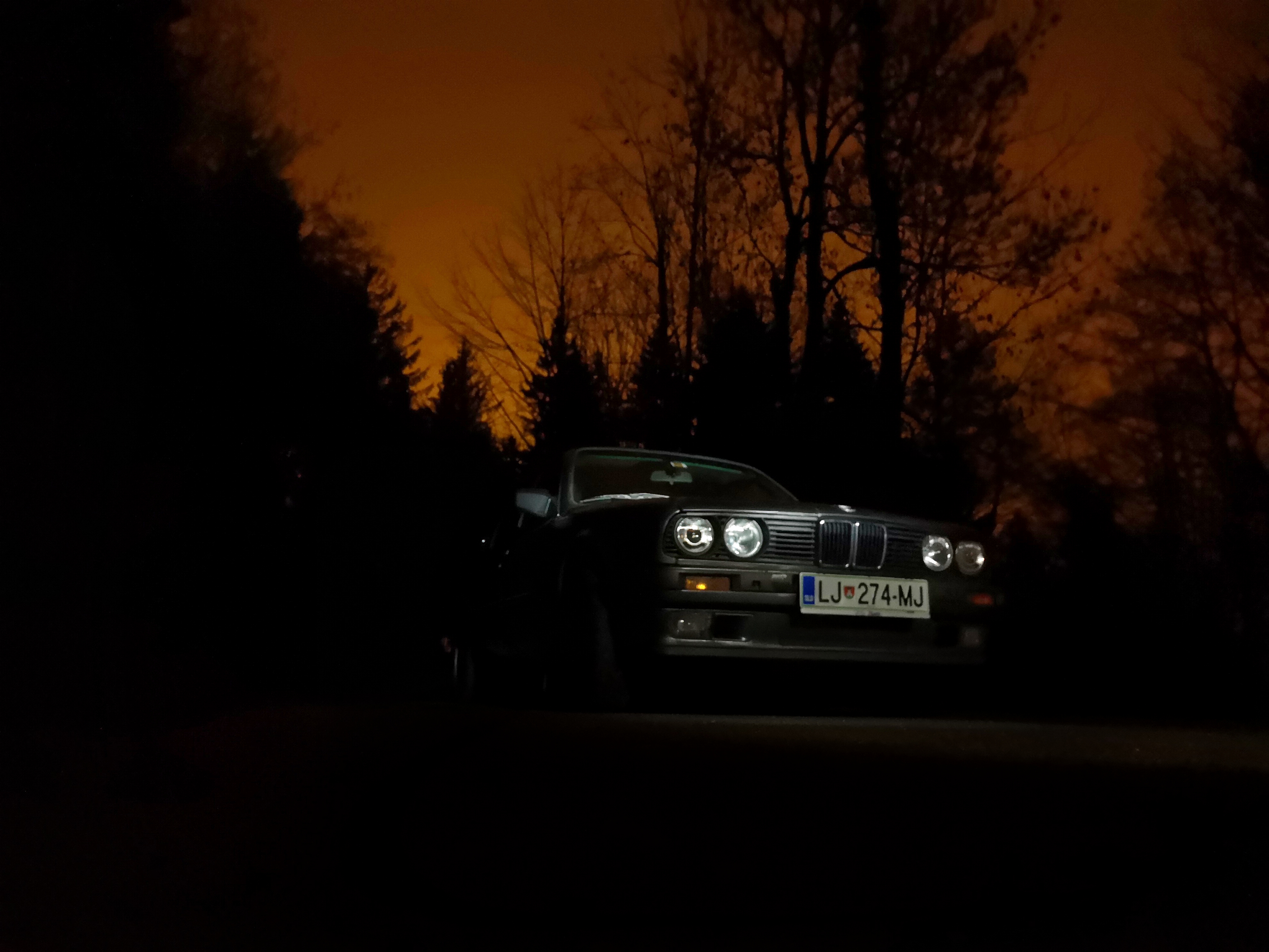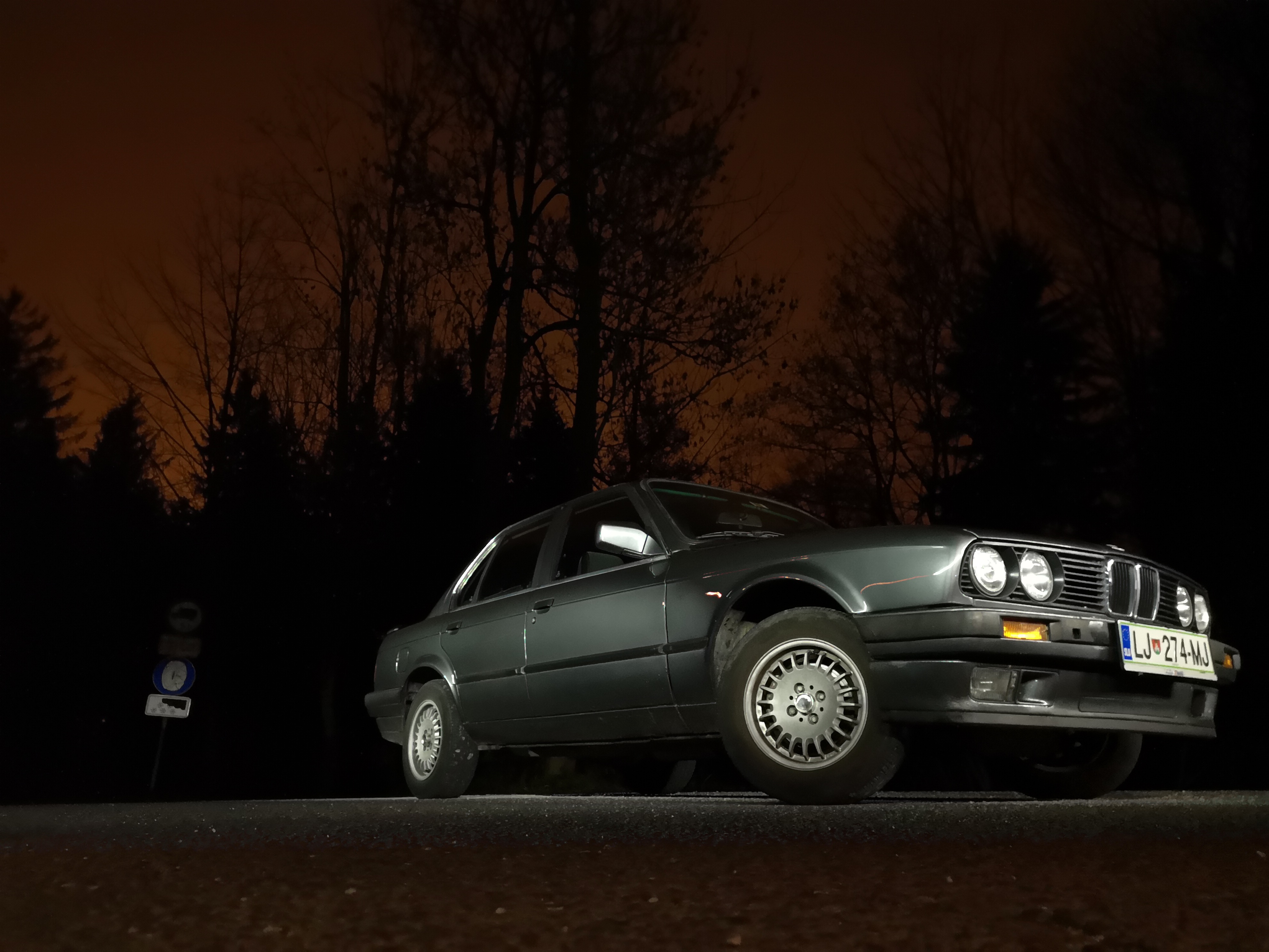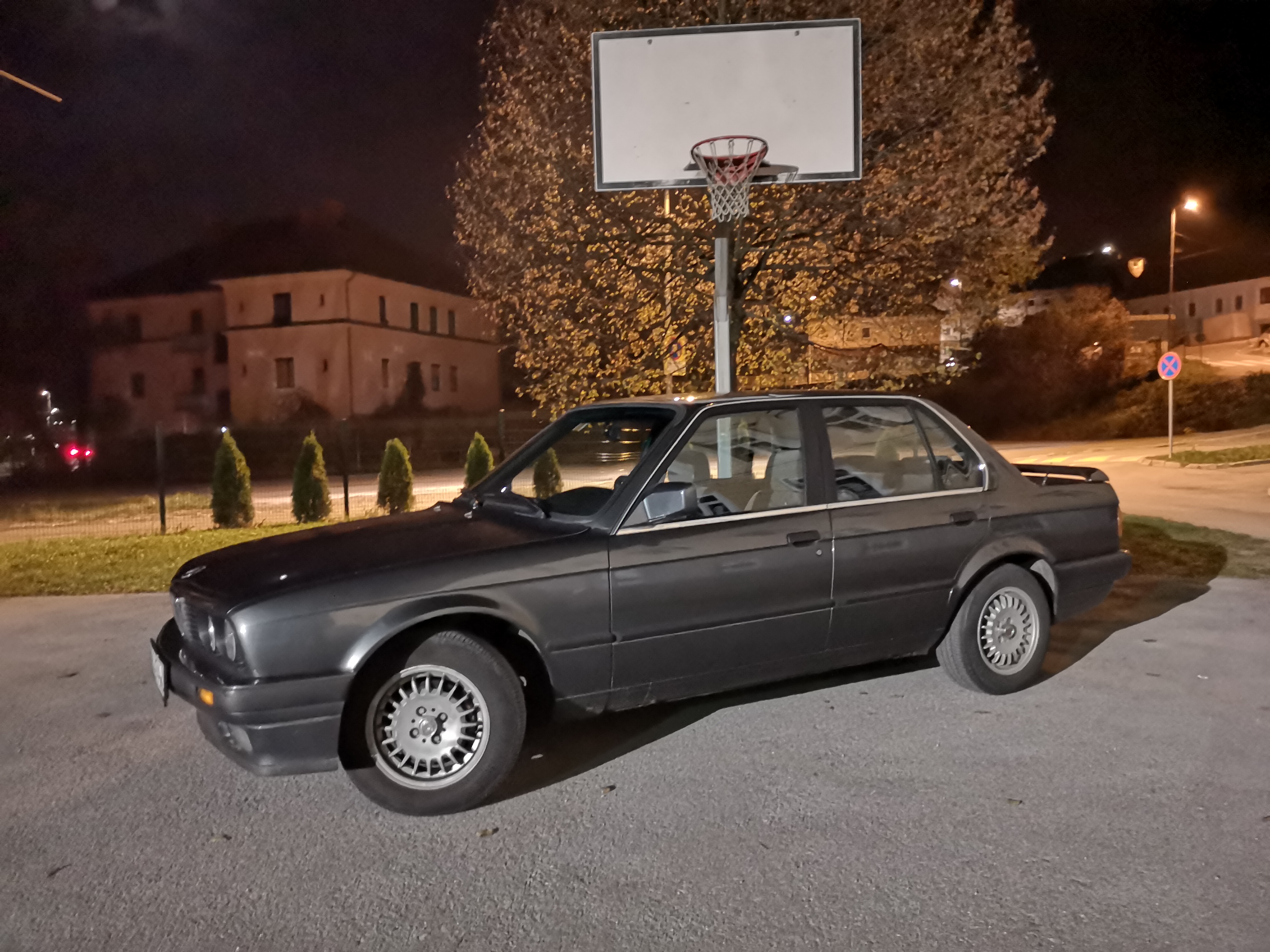 Nekako sem sicer dvomil, da bom dobil zdravo E30ko za nek normalen denar, ne glede na to koliko vrat ima in koliko opreme je na njej. Meni je sicer načeloma vseeno za opremo ter število vrat, edina stvar kjer imam neko posebno preferenco je to, da je avto PFL. Plastični odbijači na E30 mi osebno nikakor ne sedejo, ampak, po drugi strani je FL objektivno boljša osnova za is swap, saj v tem primeru dobim praktično vse kar rabim, če že imam komplet motor z E36ke.Zvečer torej za hec malo pregledam avto.net in zasledim oglas za dotičen avto. Tukaj ne bom preveč dolgovezil, šel sem pač na ogled, dorekel ceno, to je bilo to. Avto je kar se tiče rje v dobrem stanju, z izjemo popravljane sprednje desne strani podna pri traverzi, ki rahlo rjavi ampak ni sile. Razen tega nima nikjer omembe vrednih točk rje, to je pa tudi glavna stvar ki me zanima. Iskreno povedano me pikice od toče in druge malenkosti ne motijo preveč. Pelje se ok, treba je uredit pokanje zadaj levo čez luknje (sumim šalce amortizerja) ter tresenje kardana/diferenciala, ampak to se bo vse rešilo. Notranjost je zelo lepo ohranjena, z izjemo ene zlomljene ročke za šipe. Od opreme ima le zadnje zvočnike (ki so aftermarket ampak igrajo odlično) in zadnji spojler. Kakšen, ne vem, ker se ne spoznam preveč dobro na razne kozmetične dodatke za E30ke. Meglenke tudi ne vem, ali so bile standardne ali ne za ta letnik. Ta jih ima, in dejansko pridejo prav, glede na to da FL kratke luči svetijo približno enako, kot če bi se vozil kar s pozicijami.