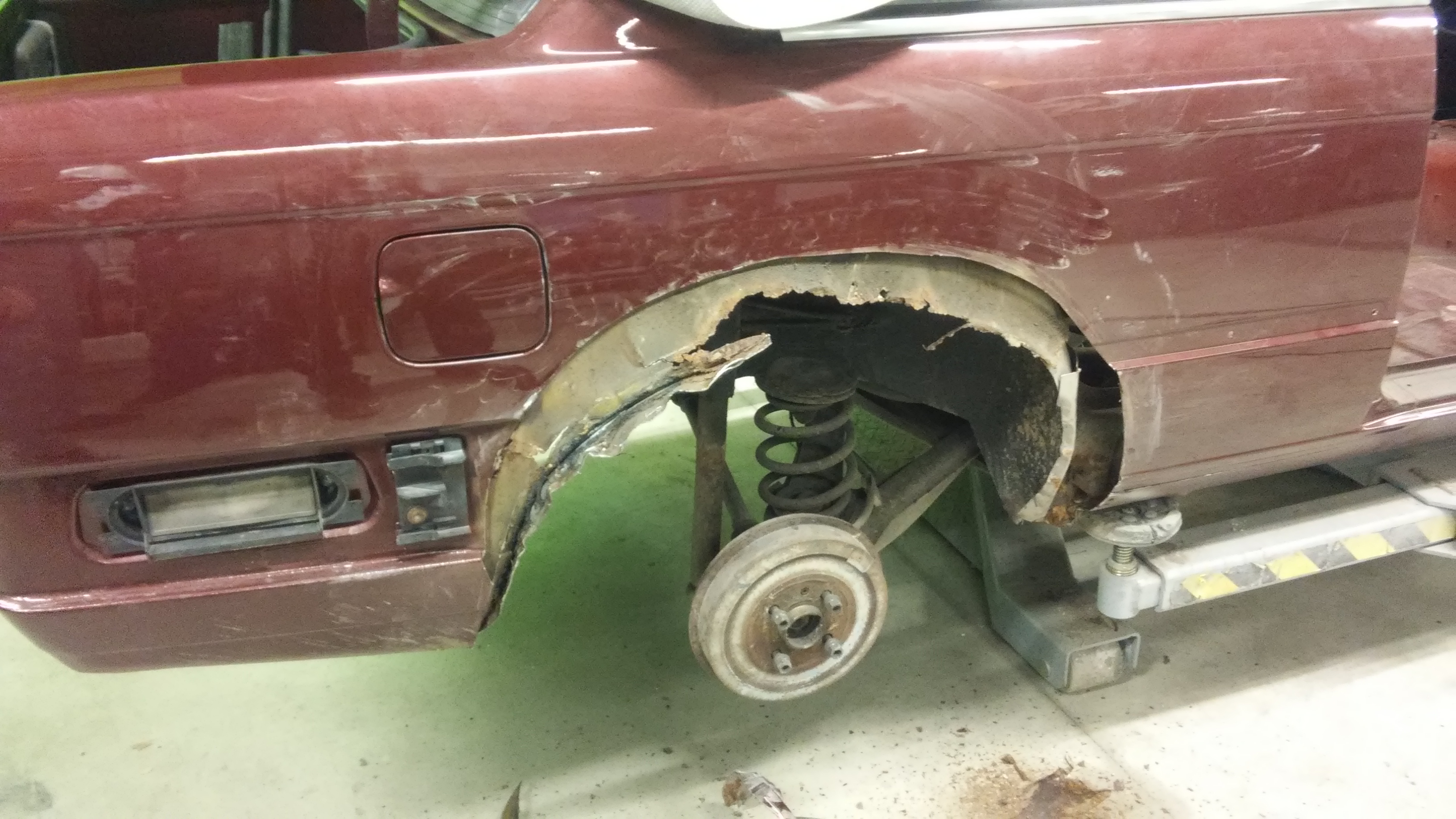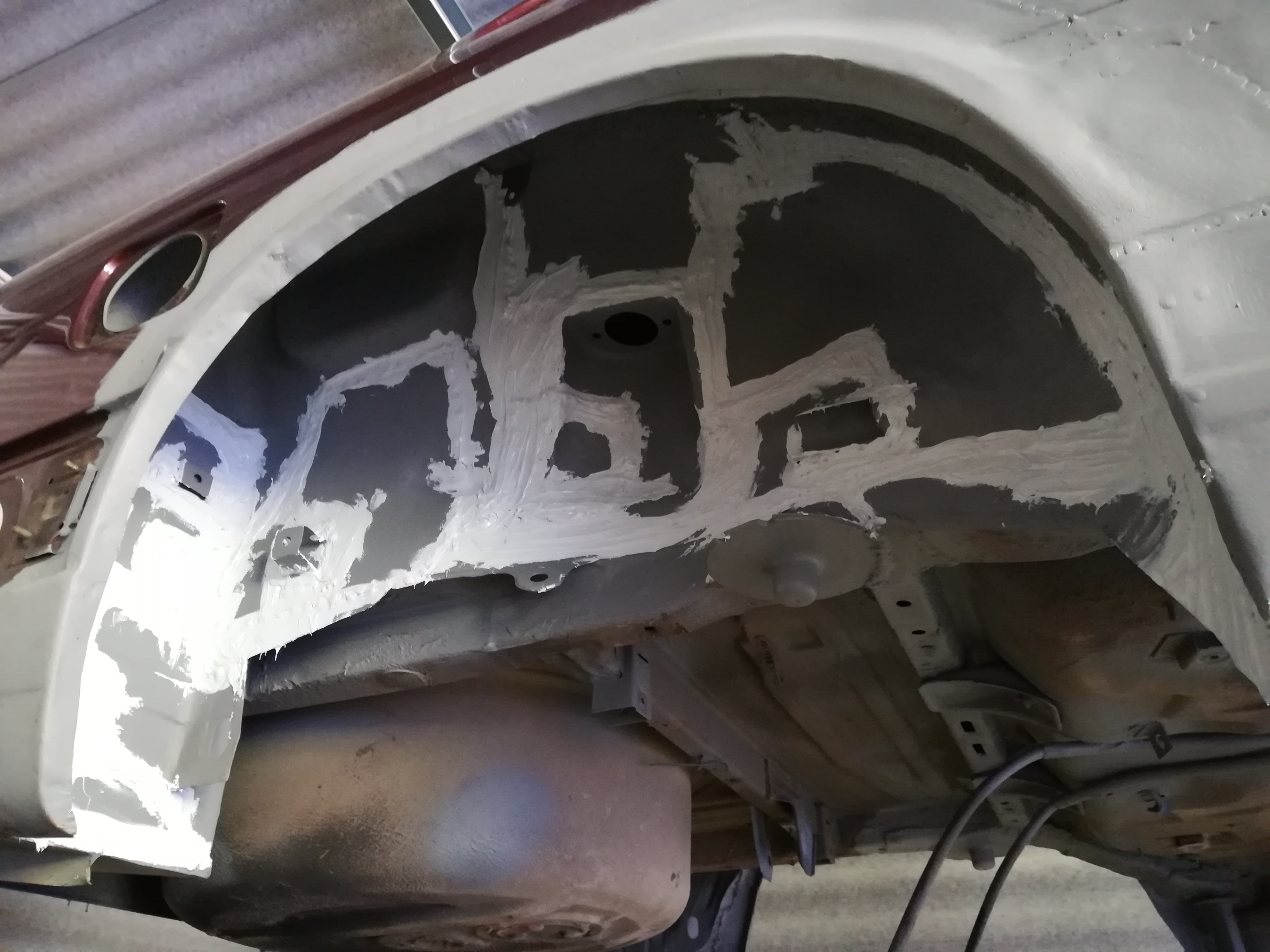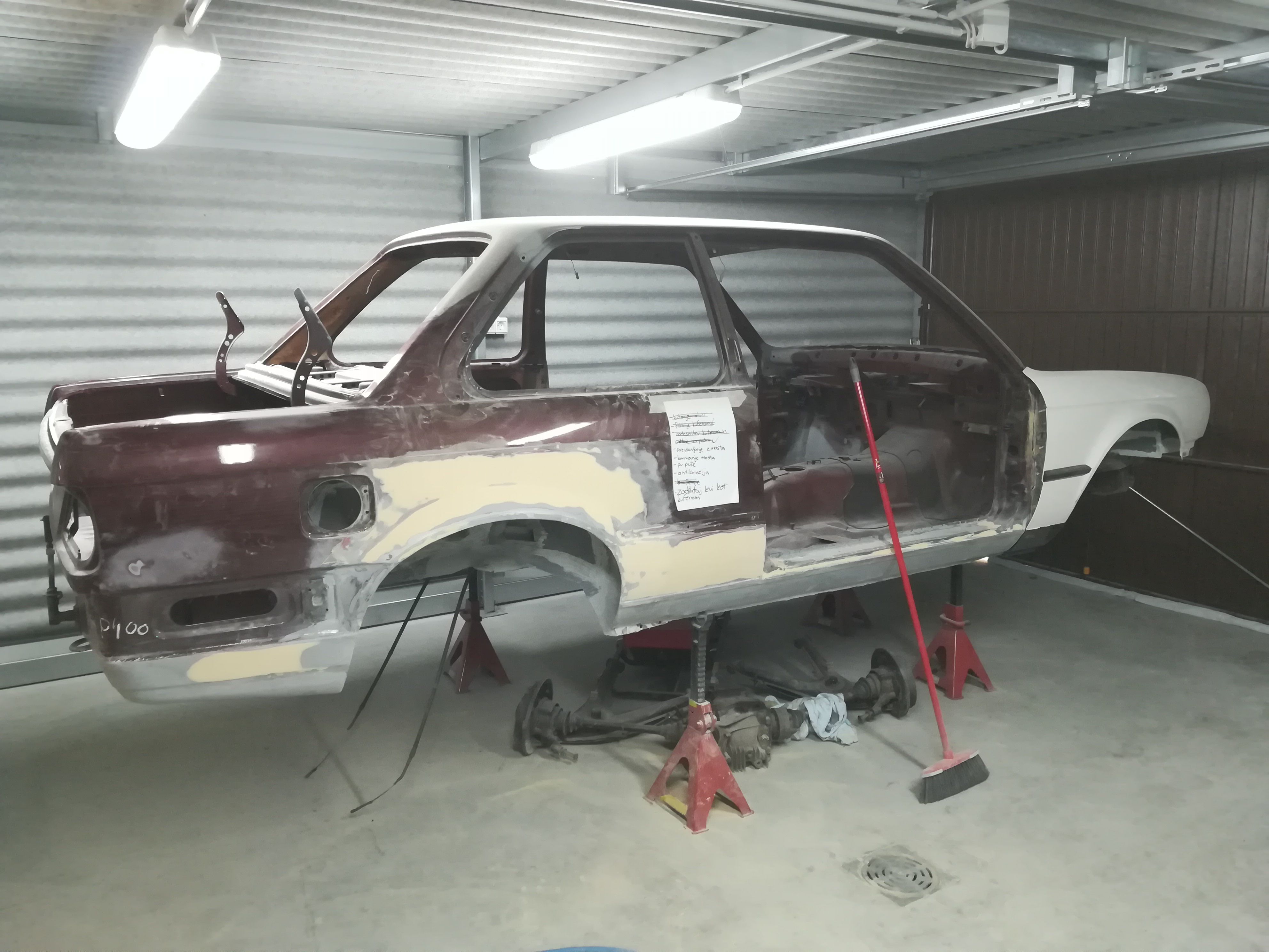 Obnova se je začela letos februara v šoli kot moj zaključni izpit. V šoli sem saniral komplet rjo na avtomobilu-novi pragovi, novi zadnji robovi, delna sanacija notranjih blatnikov, varjenje šasije ipd....Čez poletje sem doma končno postavil delavnico, nabavil opremo in nadaljeval z obnovo. Trenutno je avto le še nekaj brušenj stran od barvanja