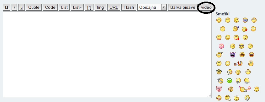 Pri oknu za urejanje besedila, kjer se določa stil pisave, vstavlja slike ipd., se na desni strani sedaj nahaja video gumb obkrožen na spodnji sliki: