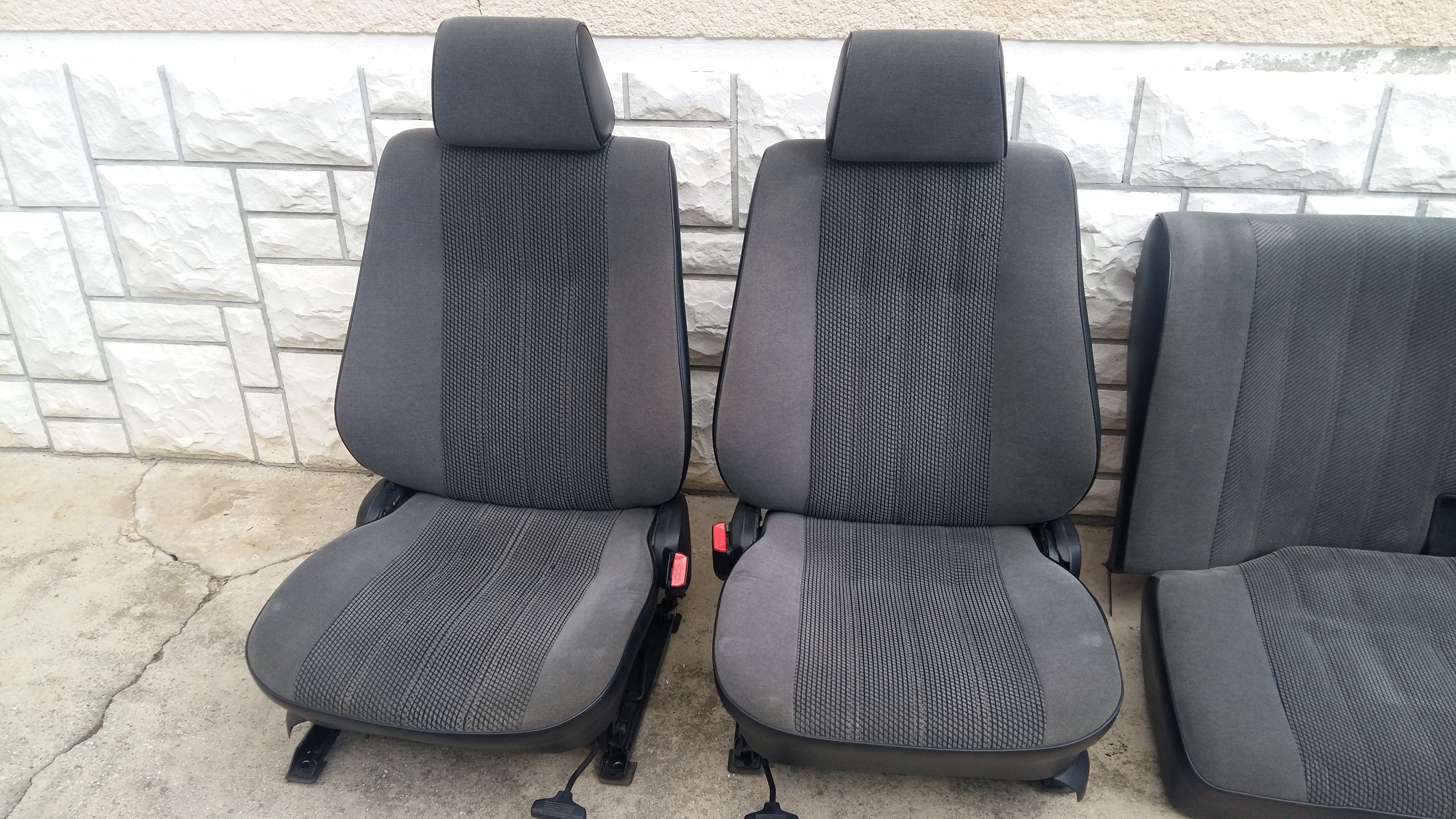Prodam sprednja sedeža in zadnjo klop za e30, sedeža sta v odličnem stanju, vse deluje brezhibno, blago v zelo dobrem stanju. Zadnja klop je tudi v dobrem stanju, na slik manjka še hrbtni del klopi v istem vzorcu kot spodnji del klopi in sedeža.
