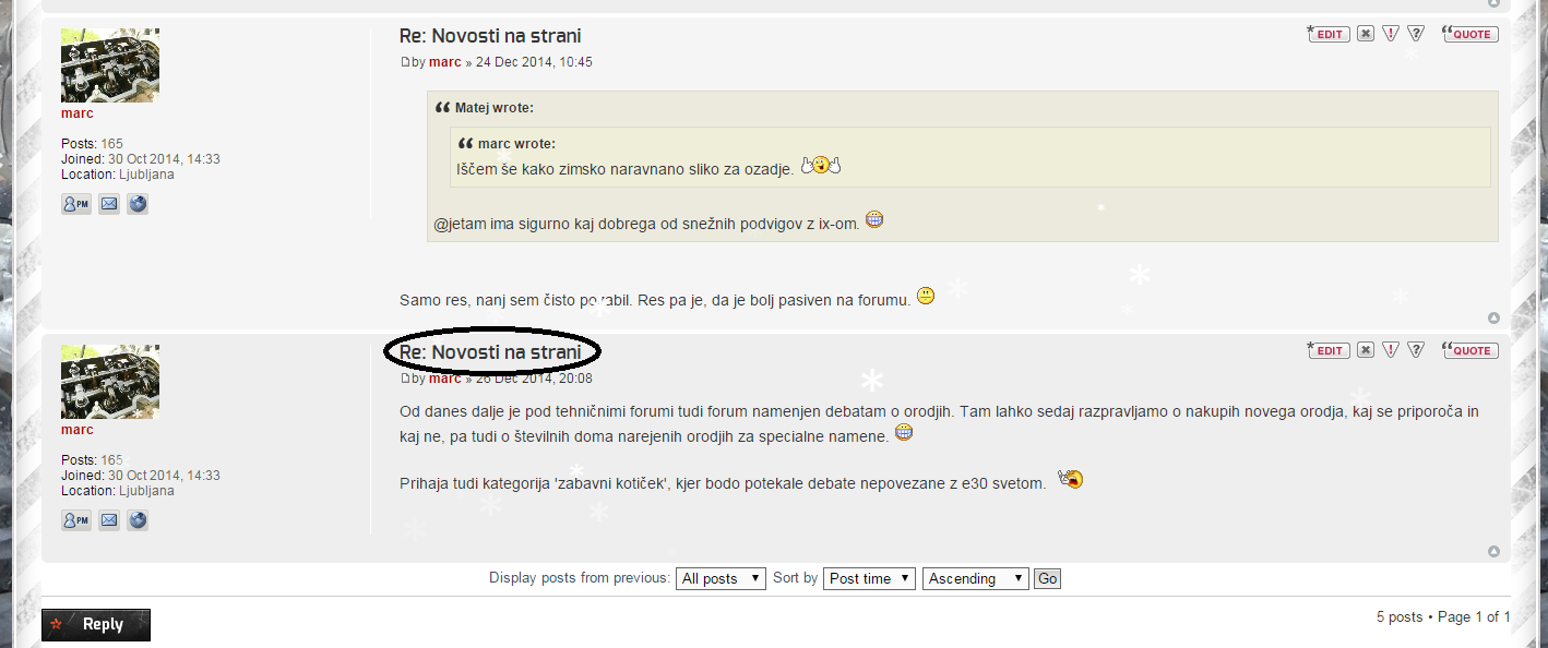 Hvala, bil sem gor že od začetka, vendar to mi je prvi post :D Drugače nisem prepričan kaj bi bilo boljše pri tem. Ali pustim tako kot sem do zdaj naredil, da prikaže en sam post skupaj z ostalo obliko strani (lahko je zavajujoče misleč, da ima topic samo en prispevek) ali da odstranim vse ostale de...