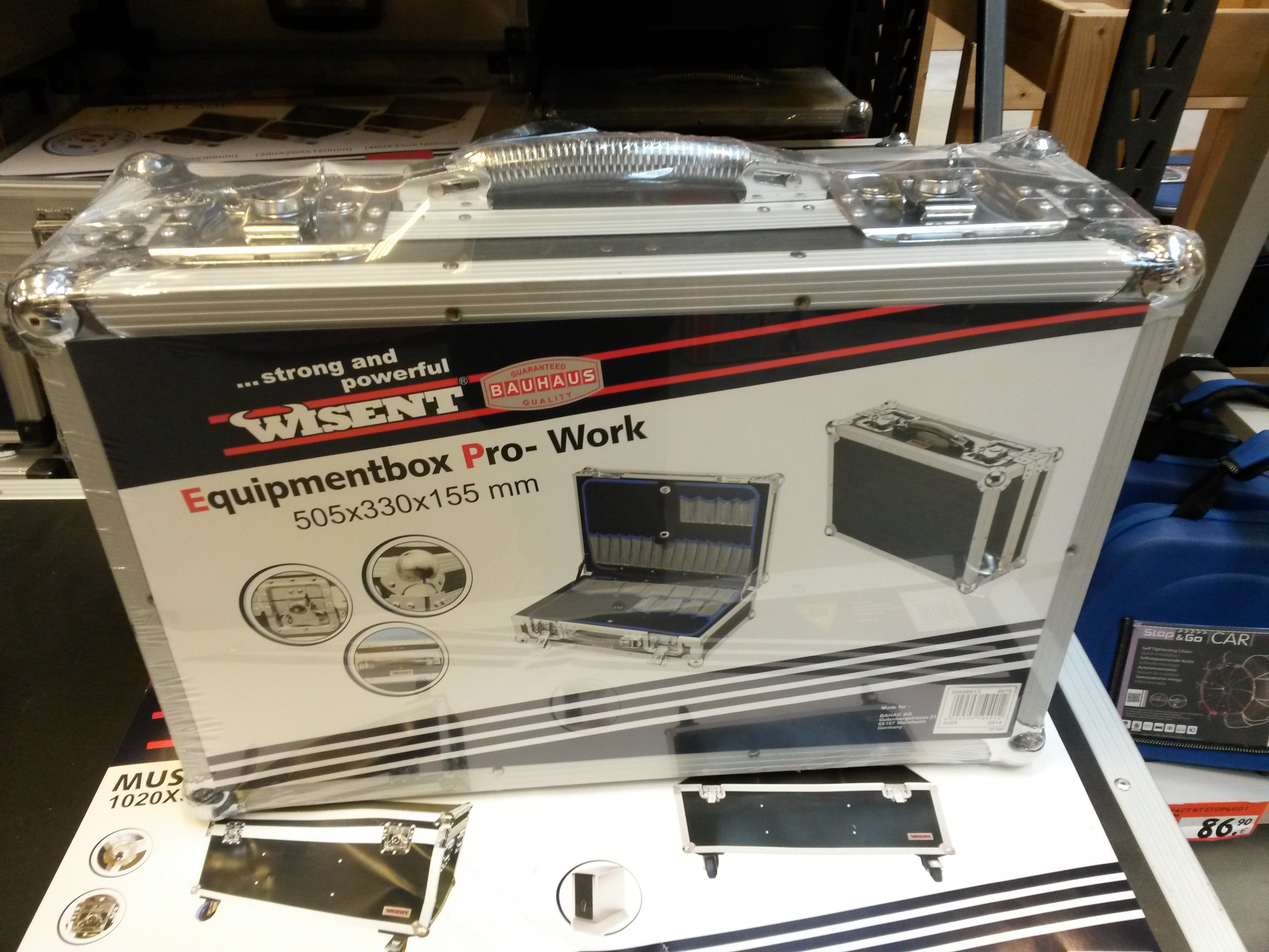 Stranice niso iz aluminija, ampak iz nekega kompozita, aluminijasti okvirji, vse ostalo prinetano železo, ročaj in vpetja so železna. Tarifa ni nizka, 55€ v bauhausu, ima pa že pripravljene plate z luknjami za orodje. Zanimajo me vaša mnenja ali če veste za kakšen podoben/boljši kovček tam do 60€.