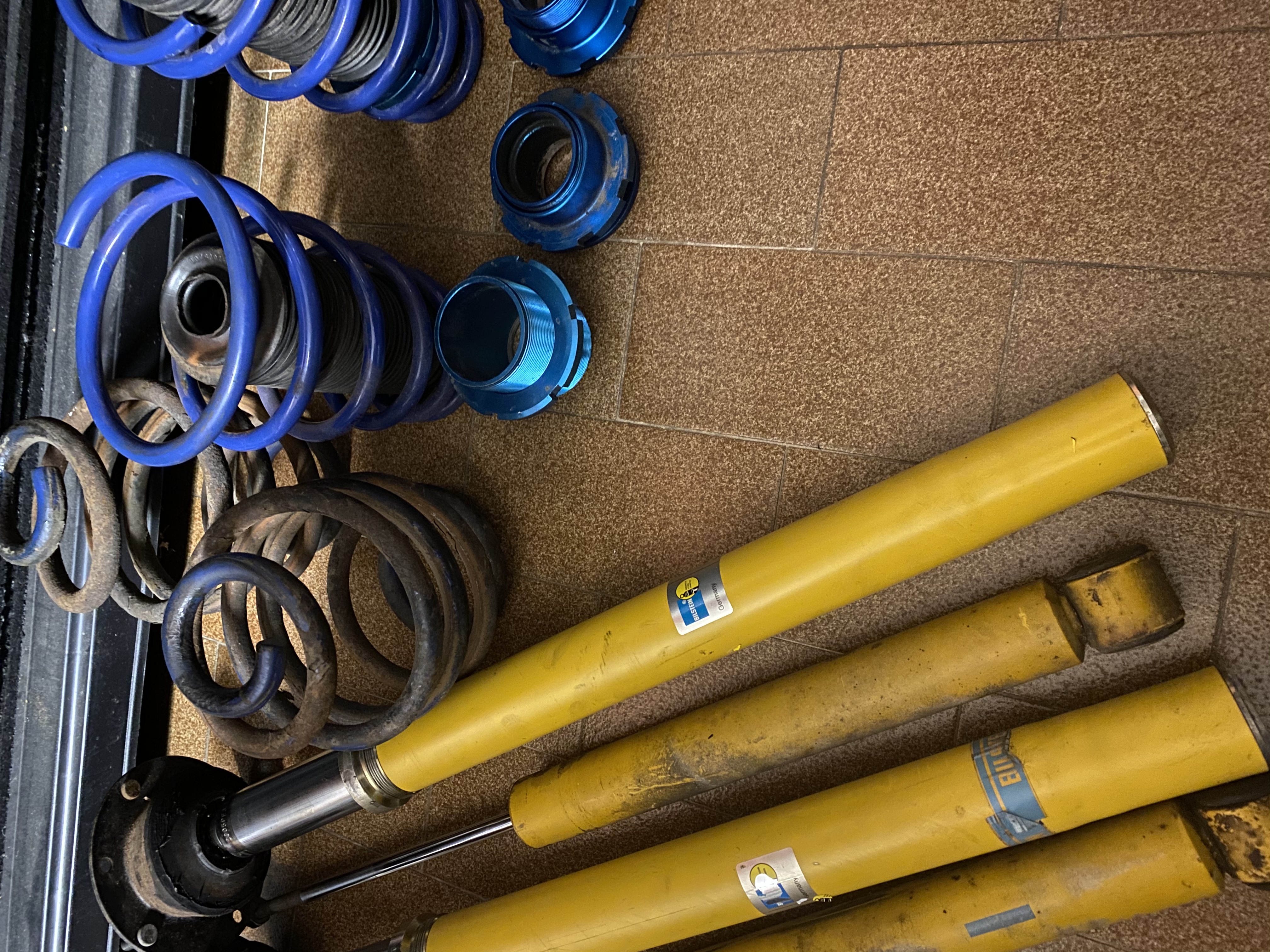 Zaradi nadgradnje podvozja prodam izgrajene amortizerje in vzmeti JOM blueline. Na avtu je vse delovalo BP.