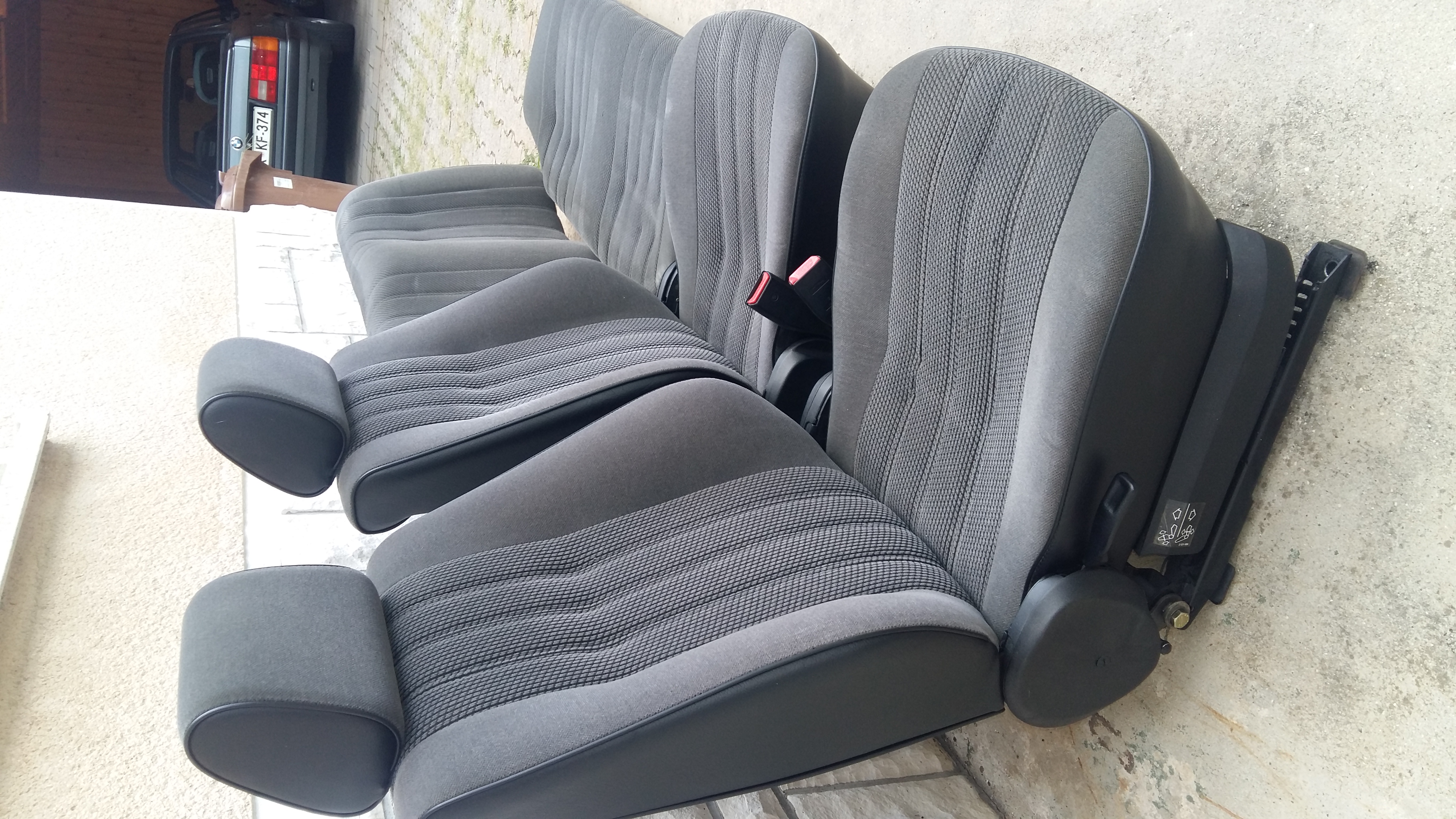 Prodam sprednja sedeža in zadnjo klop za e30, sedeža sta v odličnem stanju, vse deluje brezhibno, blago v zelo dobrem stanju. Zadnja klop je tudi v dobrem stanju, na slik manjka še hrbtni del klopi v istem vzorcu kot spodnji del klopi in sedeža.