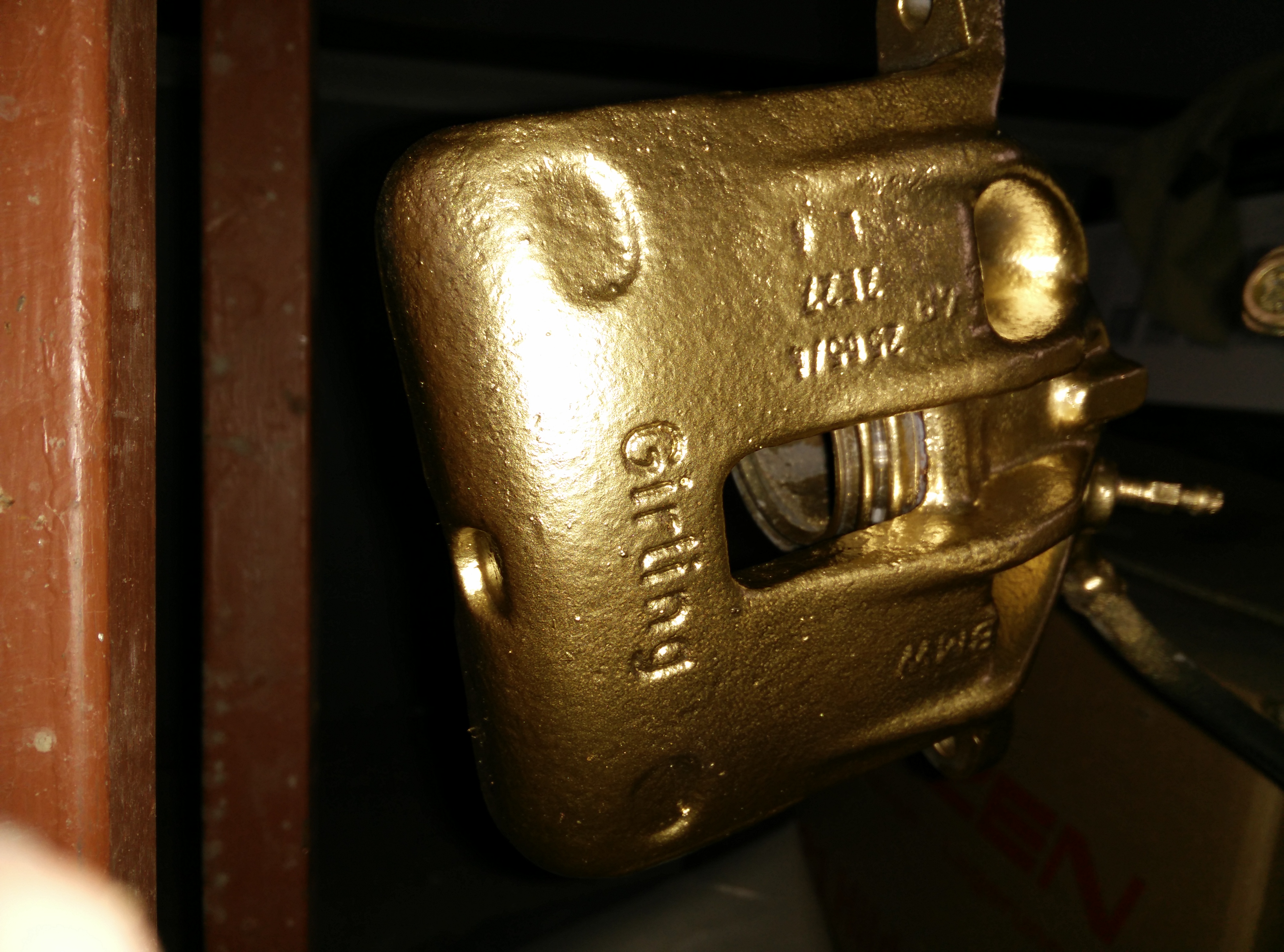 Čeljusti so v škatli na suhem v prajmerju čakale na prekrivno barvo. Opazil sem, da je na nekaj lokacijah zaščito rja že prebila, vidne so bile male pikice. Dejstvo je, da mi jih peskal vargalant, oz. za to poiskal zunanjega izvajalca ter seveda še dodatno računal. Kaka je bila granulacija pri peskanju ne vem, predvidevam pa da bolj fina oz., glede na stopnjo zarjavelosti, neustrezna (na spodnji sliki se pikic sicer ne vidi).