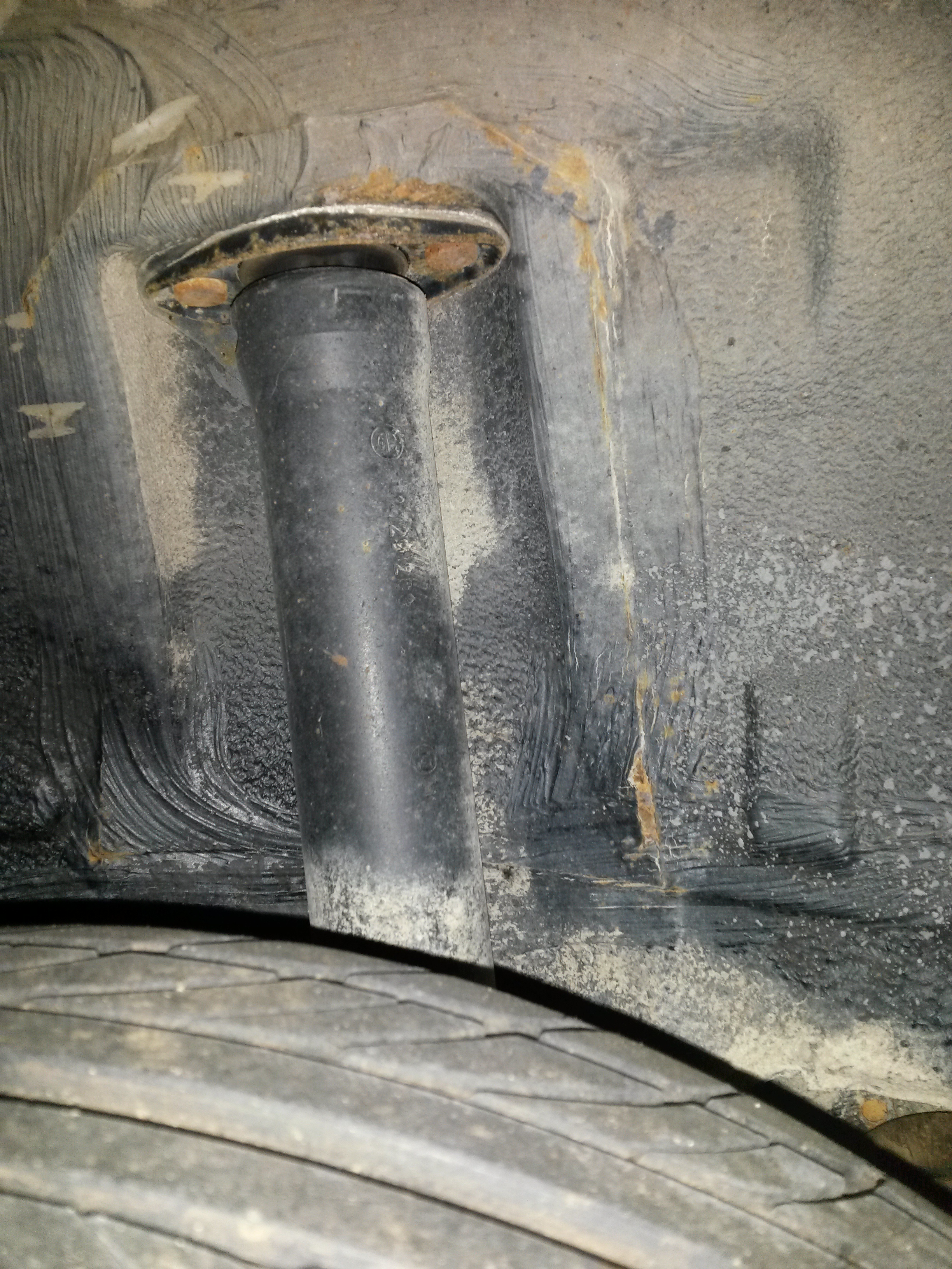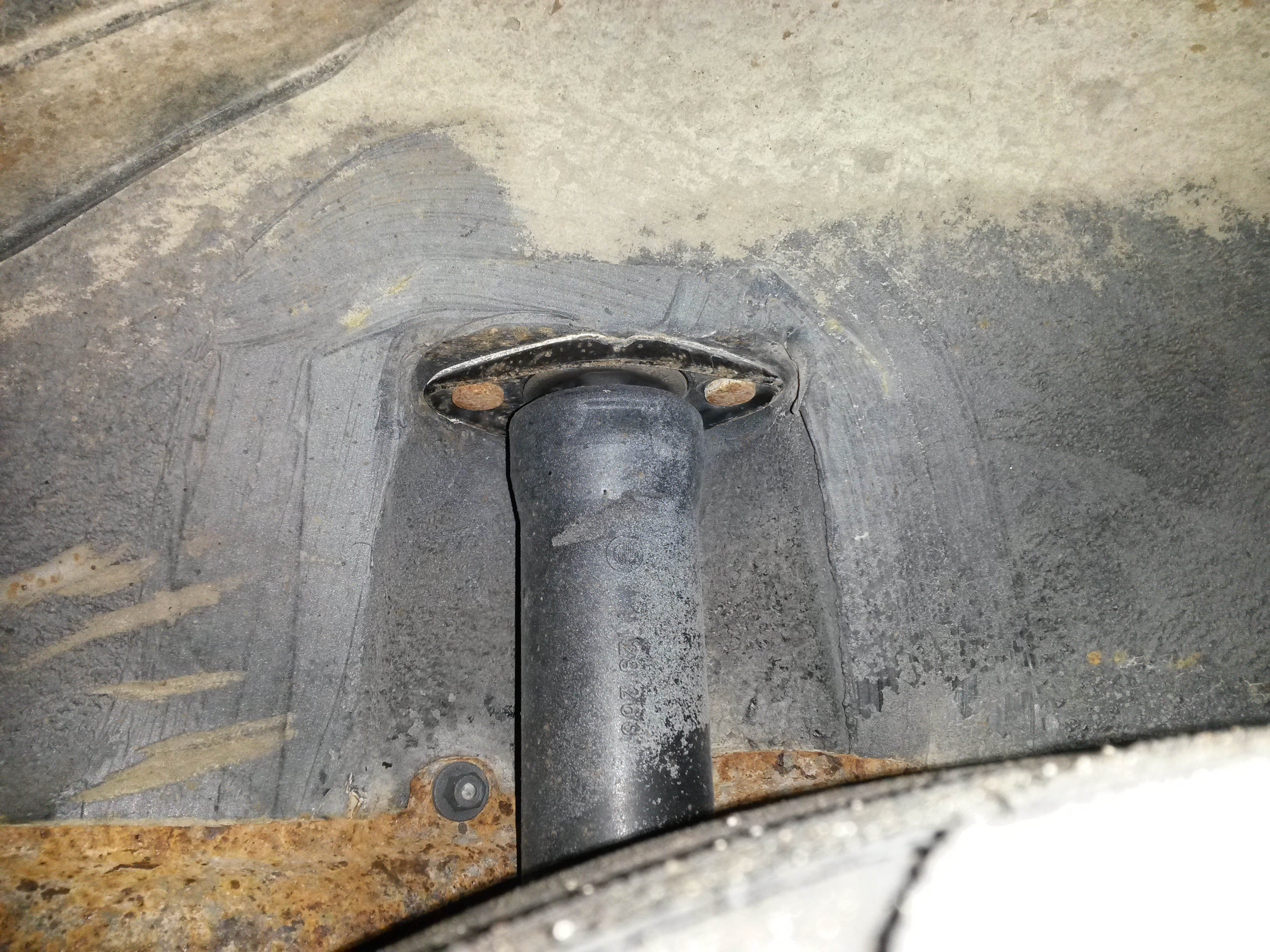 Zgornje vpetje amortizerja zadaj levo...po brušenju luknjica ob luknjici predvidevam: