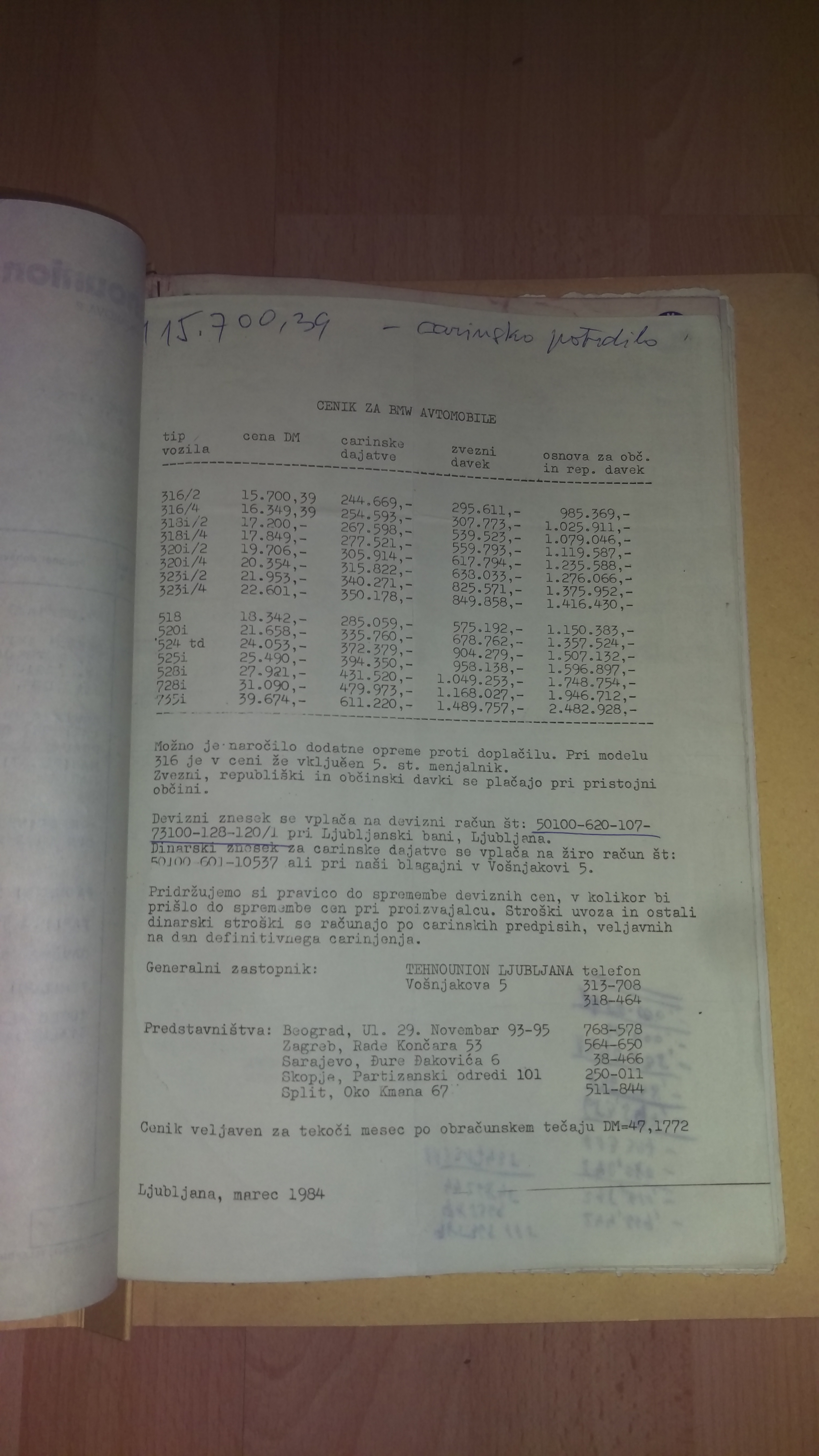 ...kupljena je bila 31. 3. 1984 pri Tehnounionu, kot najcenejša različica, katera je takrat v Nemčiji stala