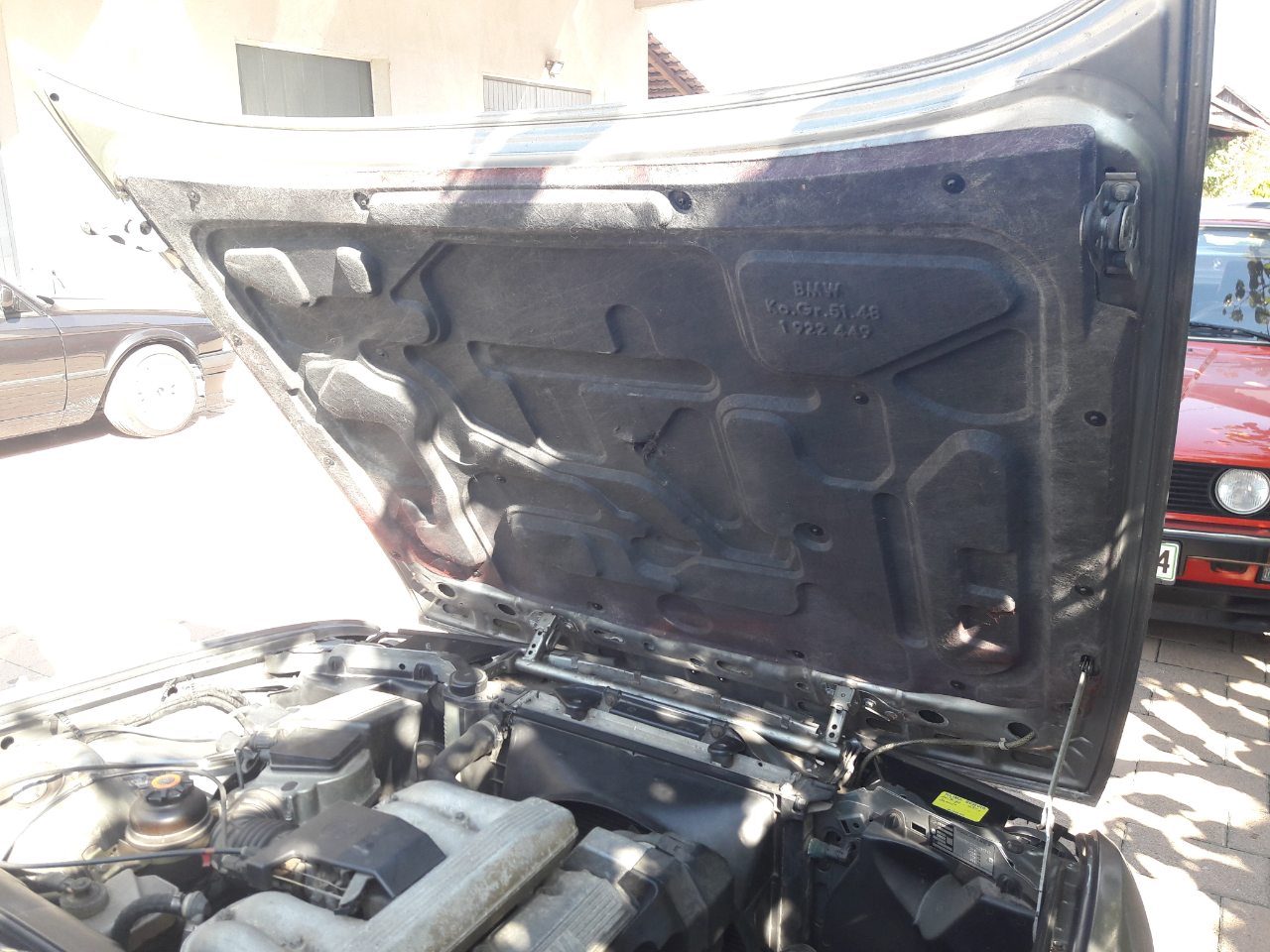Za konec sem še danes montiral prednjo tapeto pod motornim pokrovom. Obstoječa izolacija je bila v obupnem stanju zato se jo je spraskalo dol: