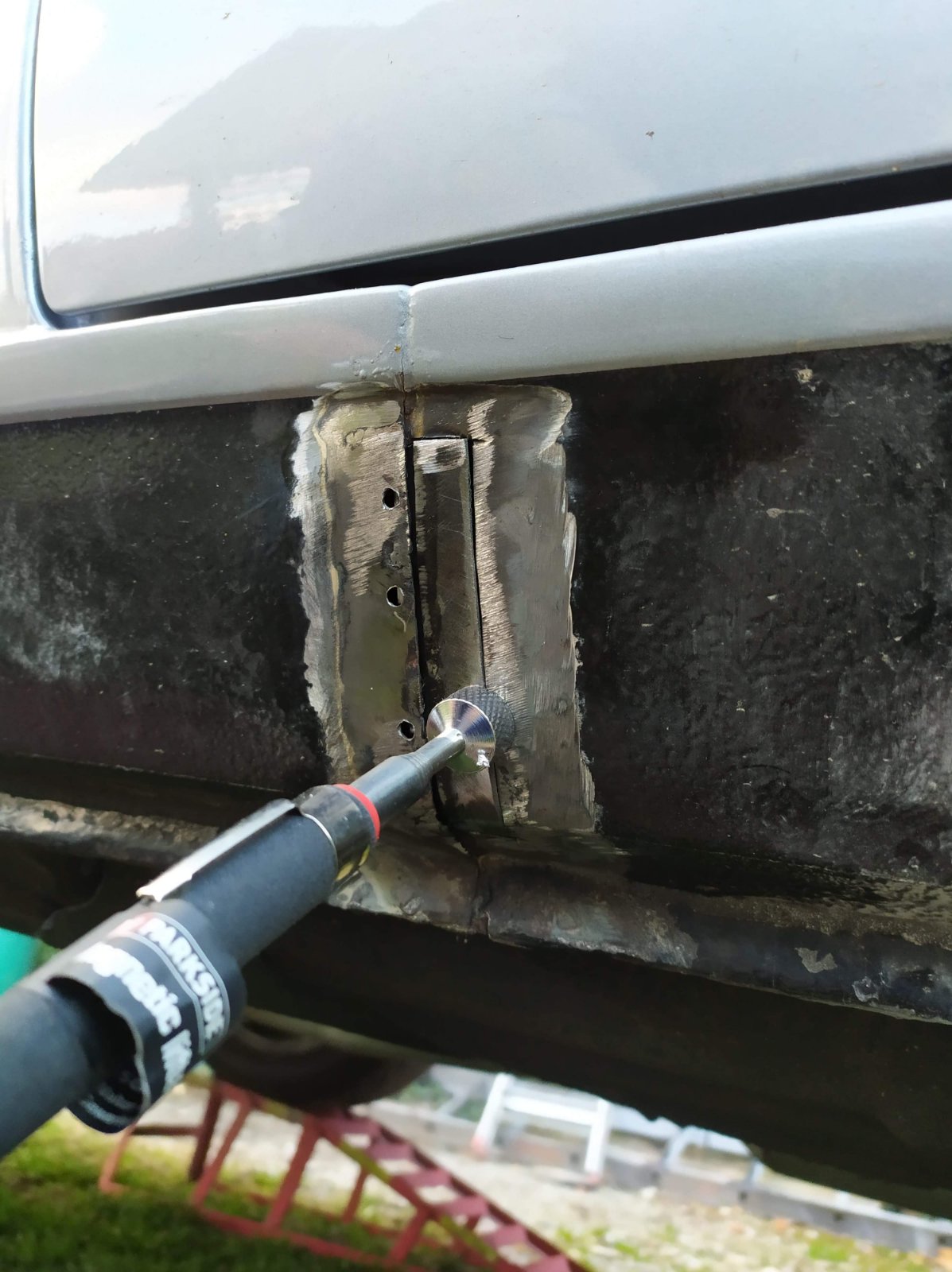 Lani se ni dosti delalo na avtu, se je pa zato malo letos nadoknadilo. Poden je doživel ponovno kleparijo. Notranji del praga je v zadnjih 10ih letih spet malo načelo, pa še neke točke na požarni. Odločil sem se, da od tega popravila avto ne bo več zunaj, tako da računam, da bo zadeva zdržala dlje časa. :)