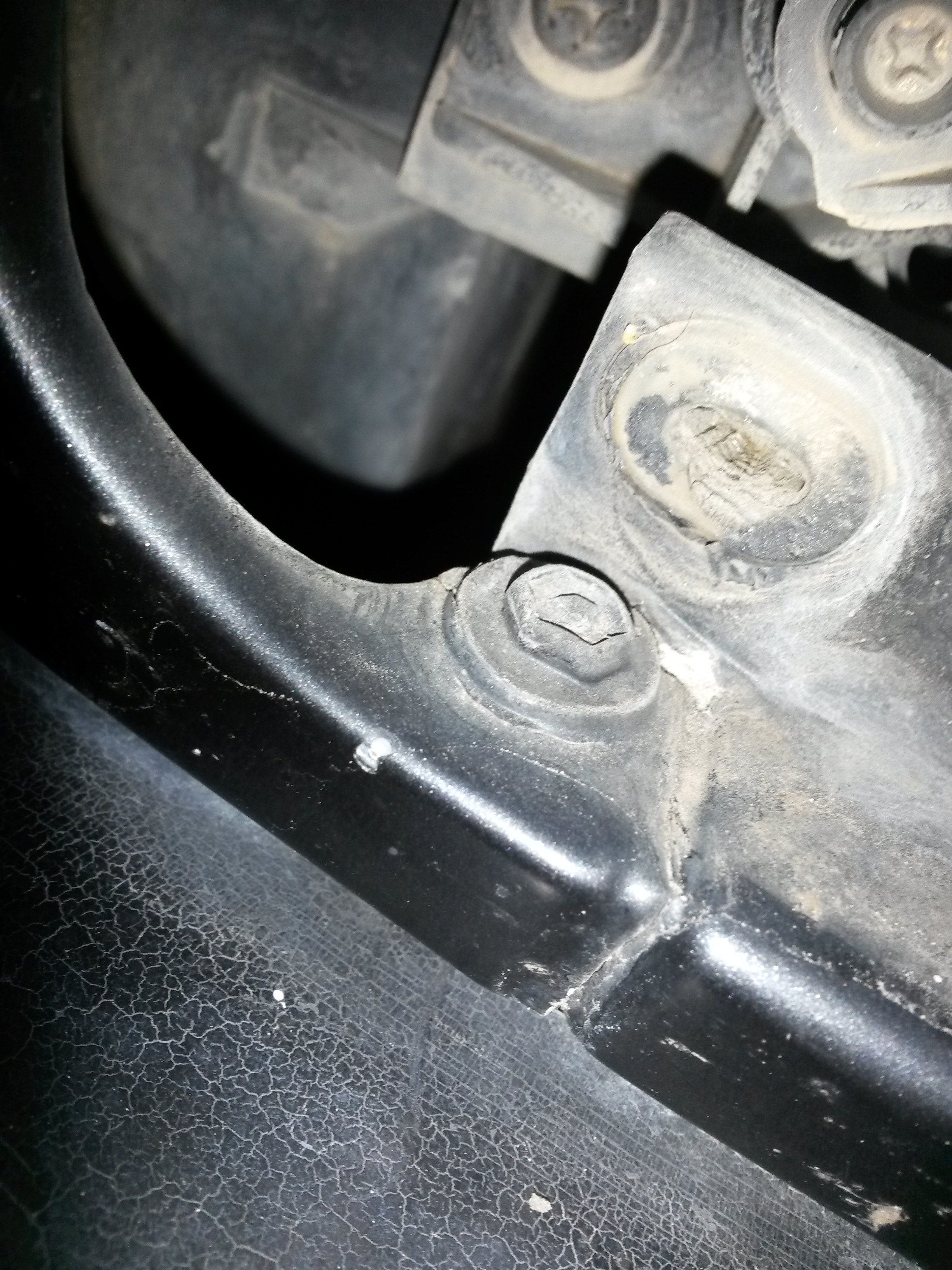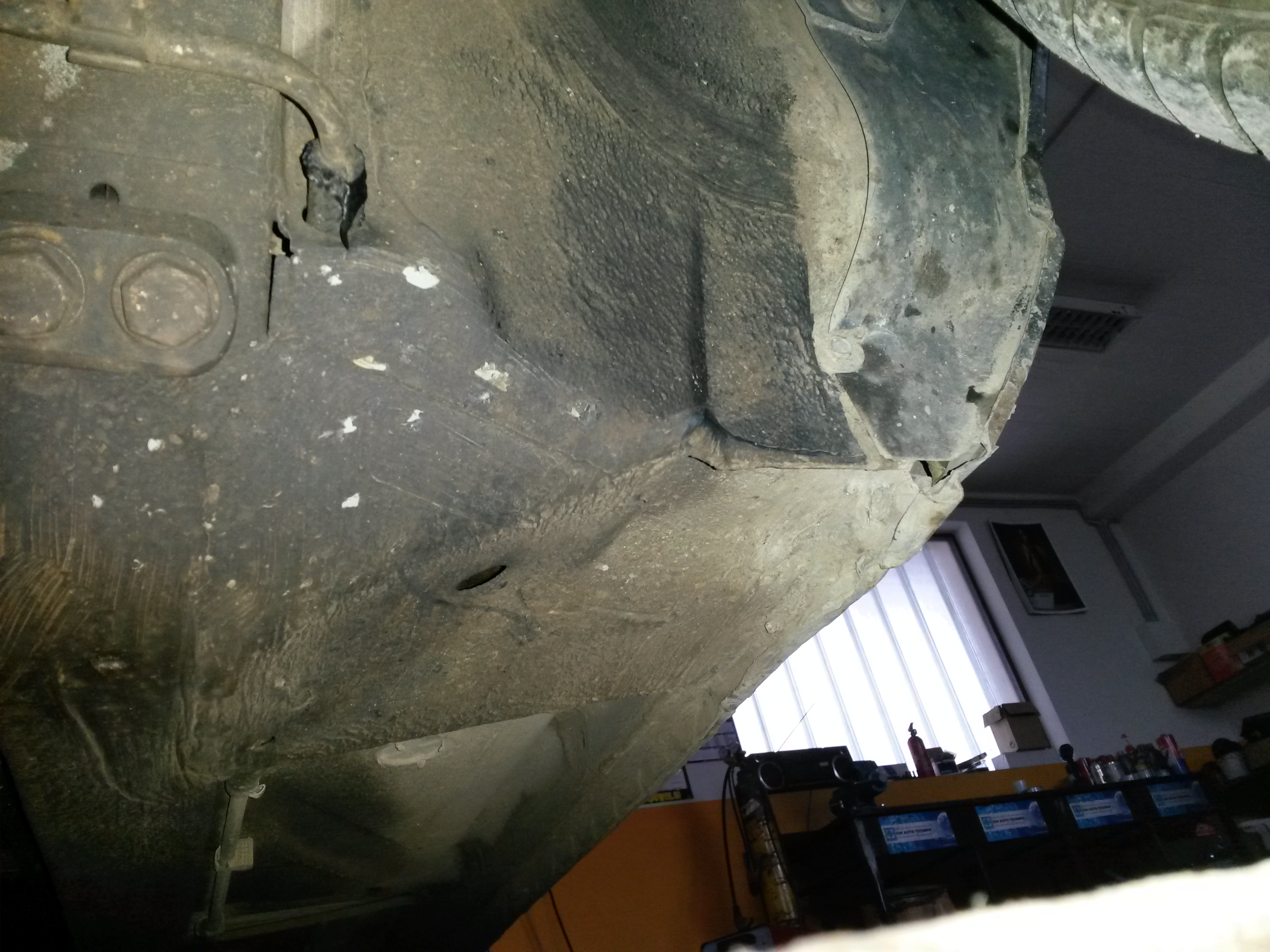 Sepravi edini feler pleha na podvozju so praske in poškodbe zaradi nepravilnega dvigovanja avta (spredaj pri robovih blatnikov).