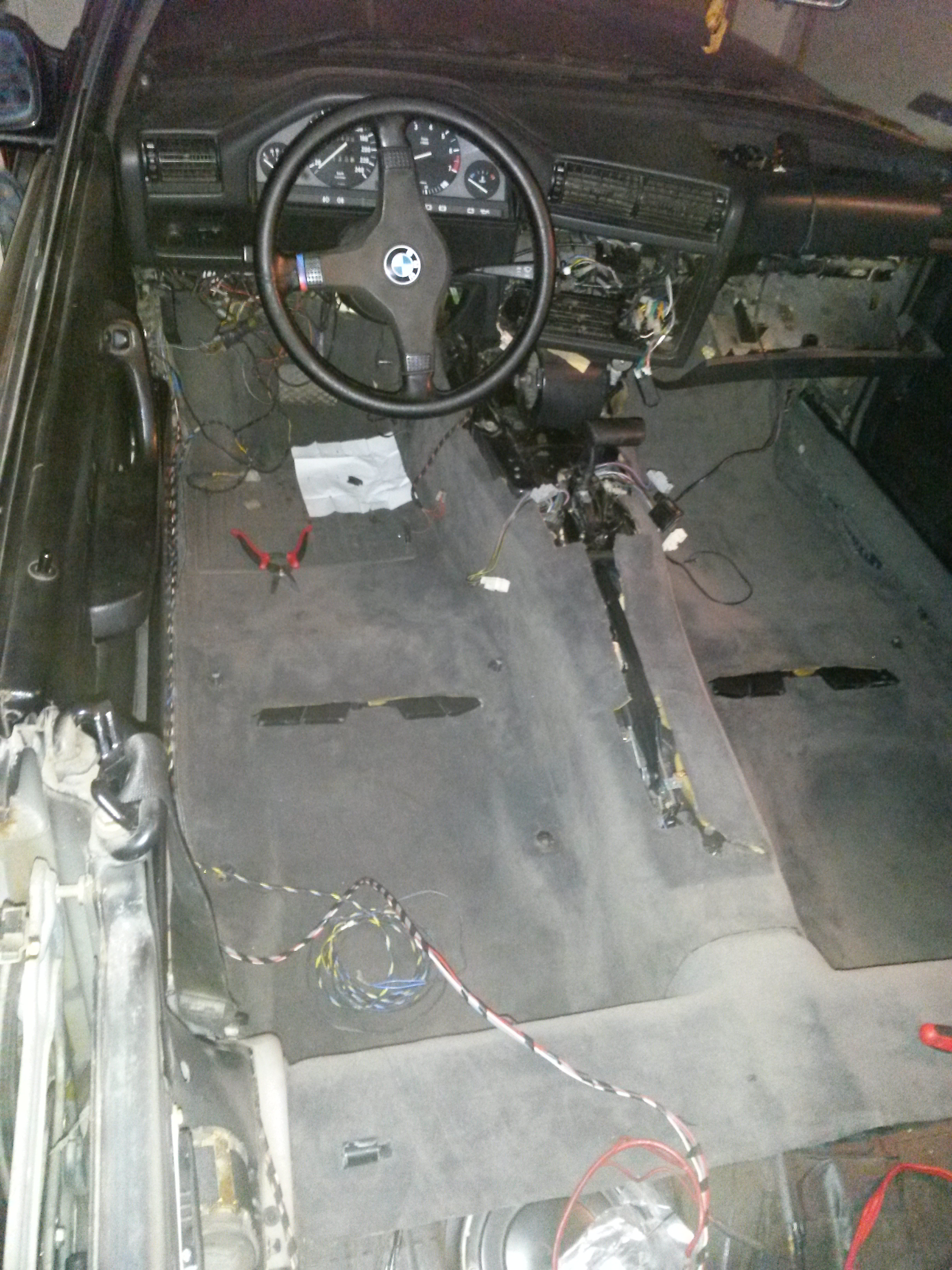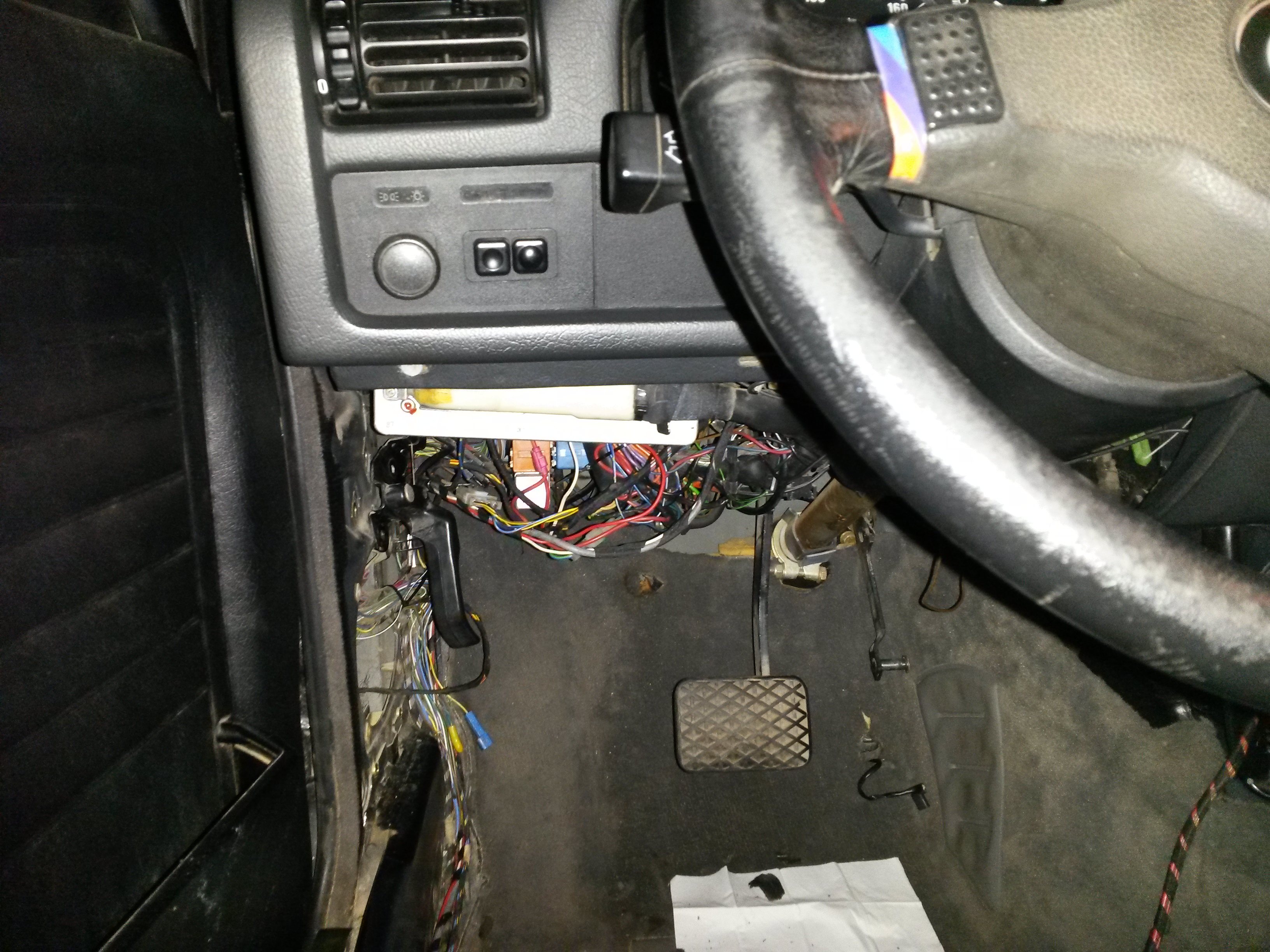 Dovolj tega drek*, kabli za aftermarket ojačevalec in zvočnike so vsi leteli ven in pripravilo se je zdravilo. Nedotaknjen originalen šop sprednje in zadnje zvočniške inštalacije ter original kablovje za električno anteno: