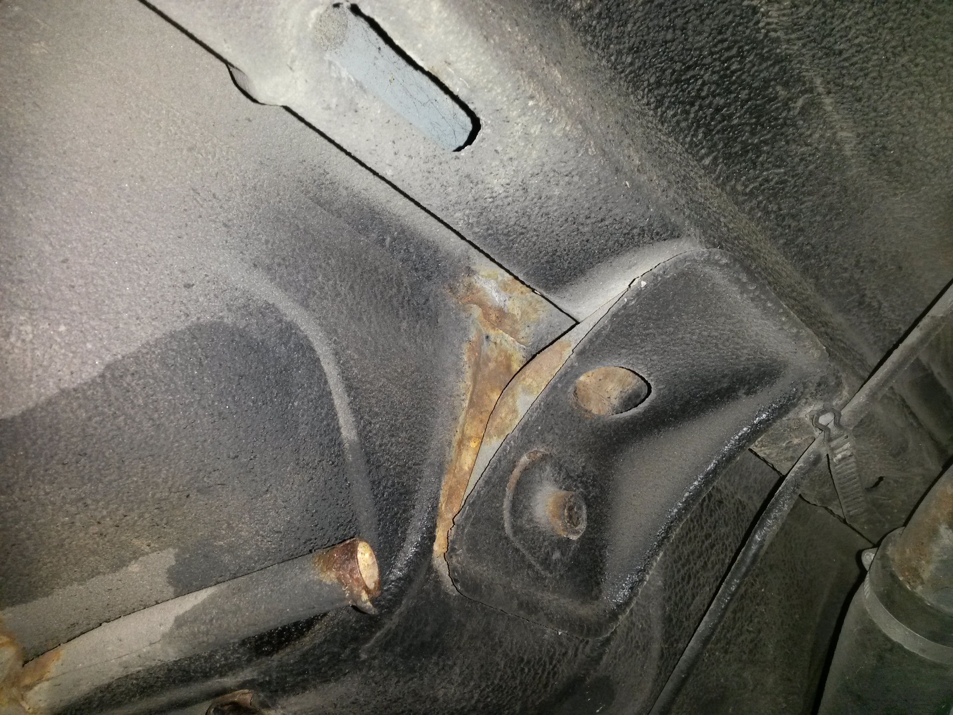 Na desnem koncu robček (zopet posledica slabega popravila v preteklosti), in pa površinska rja okrog nosilca zadnjega mostu (na drugi strani podobno, nekoliko manj):