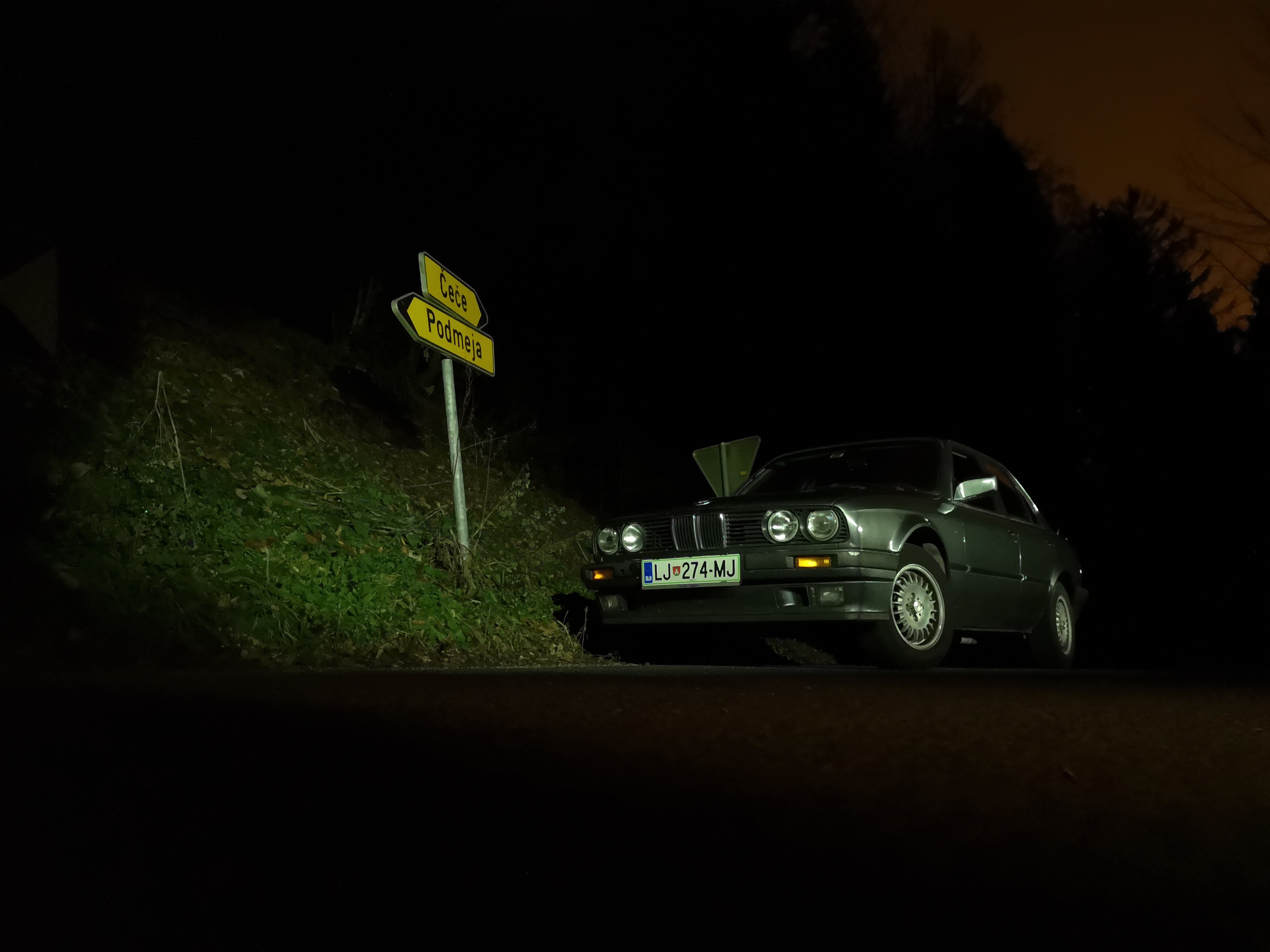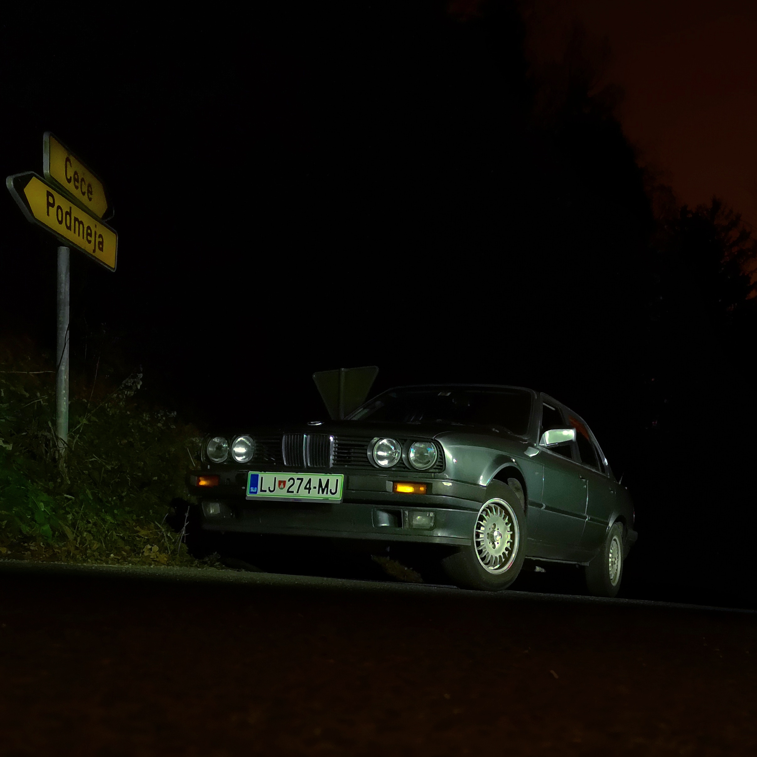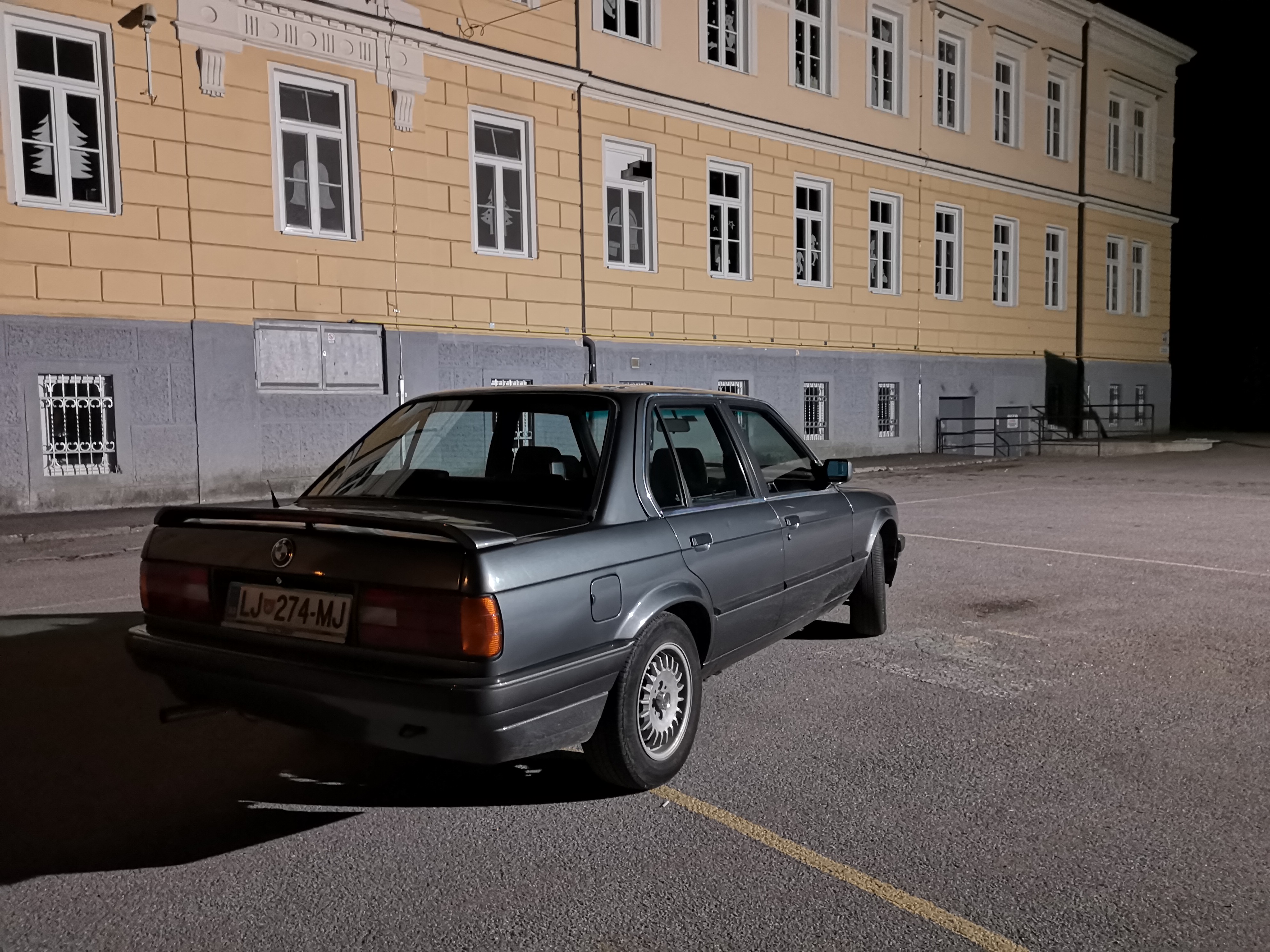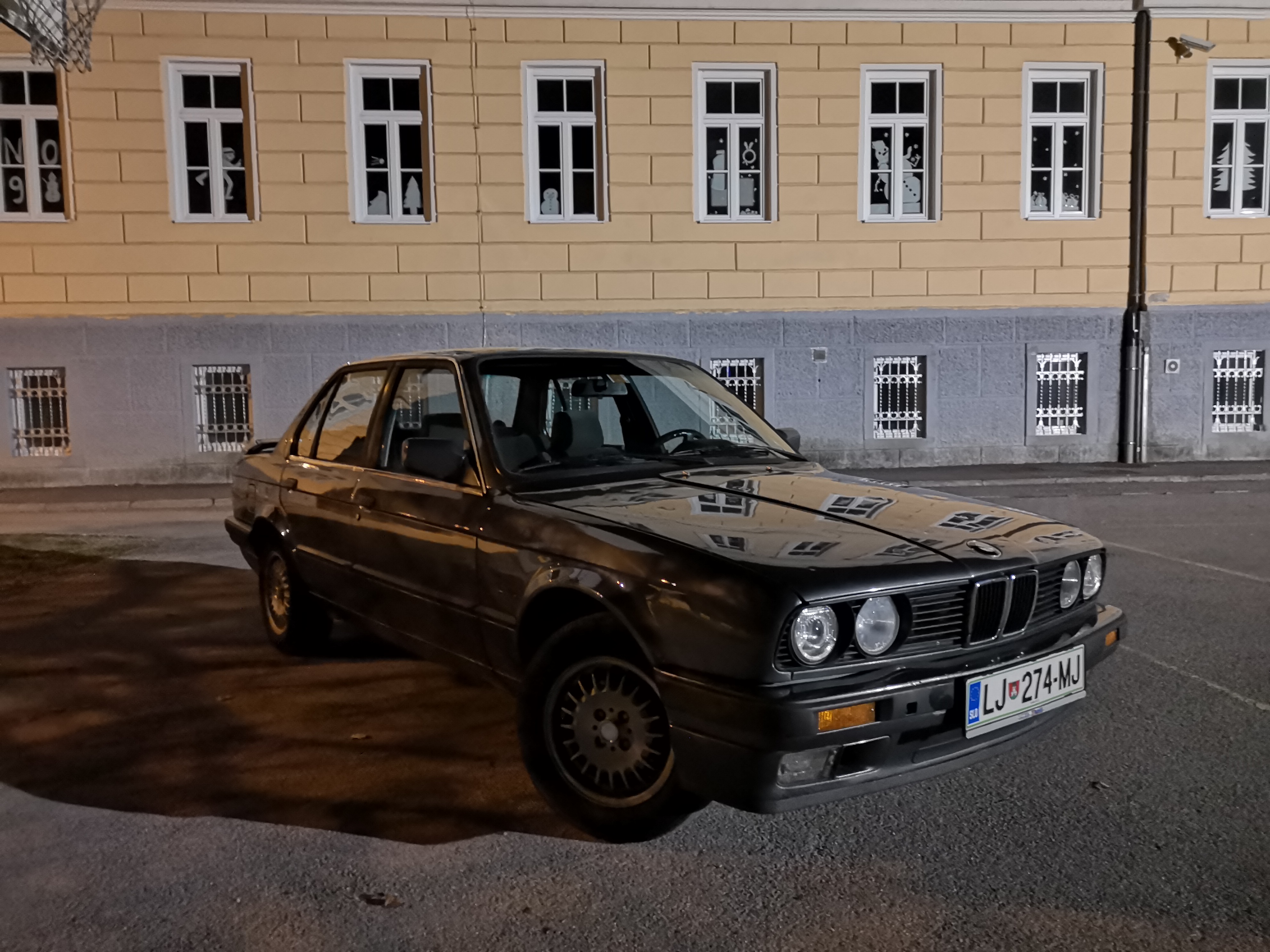 Nekako sem sicer dvomil, da bom dobil zdravo E30ko za nek normalen denar, ne glede na to koliko vrat ima in koliko opreme je na njej. Meni je sicer načeloma vseeno za opremo ter število vrat, edina stvar kjer imam neko posebno preferenco je to, da je avto PFL. Plastični odbijači na E30 mi osebno nikakor ne sedejo, ampak, po drugi strani je FL objektivno boljša osnova za is swap, saj v tem primeru dobim praktično vse kar rabim, če že imam komplet motor z E36ke.Zvečer torej za hec malo pregledam avto.net in zasledim oglas za dotičen avto. Tukaj ne bom preveč dolgovezil, šel sem pač na ogled, dorekel ceno, to je bilo to. Avto je kar se tiče rje v dobrem stanju, z izjemo popravljane sprednje desne strani podna pri traverzi, ki rahlo rjavi ampak ni sile. Razen tega nima nikjer omembe vrednih točk rje, to je pa tudi glavna stvar ki me zanima. Iskreno povedano me pikice od toče in druge malenkosti ne motijo preveč. Pelje se ok, treba je uredit pokanje zadaj levo čez luknje (sumim šalce amortizerja) ter tresenje kardana/diferenciala, ampak to se bo vse rešilo. Notranjost je zelo lepo ohranjena, z izjemo ene zlomljene ročke za šipe. Od opreme ima le zadnje zvočnike (ki so aftermarket ampak igrajo odlično) in zadnji spojler. Kakšen, ne vem, ker se ne spoznam preveč dobro na razne kozmetične dodatke za E30ke. Meglenke tudi ne vem, ali so bile standardne ali ne za ta letnik. Ta jih ima, in dejansko pridejo prav, glede na to da FL kratke luči svetijo približno enako, kot če bi se vozil kar s pozicijami.