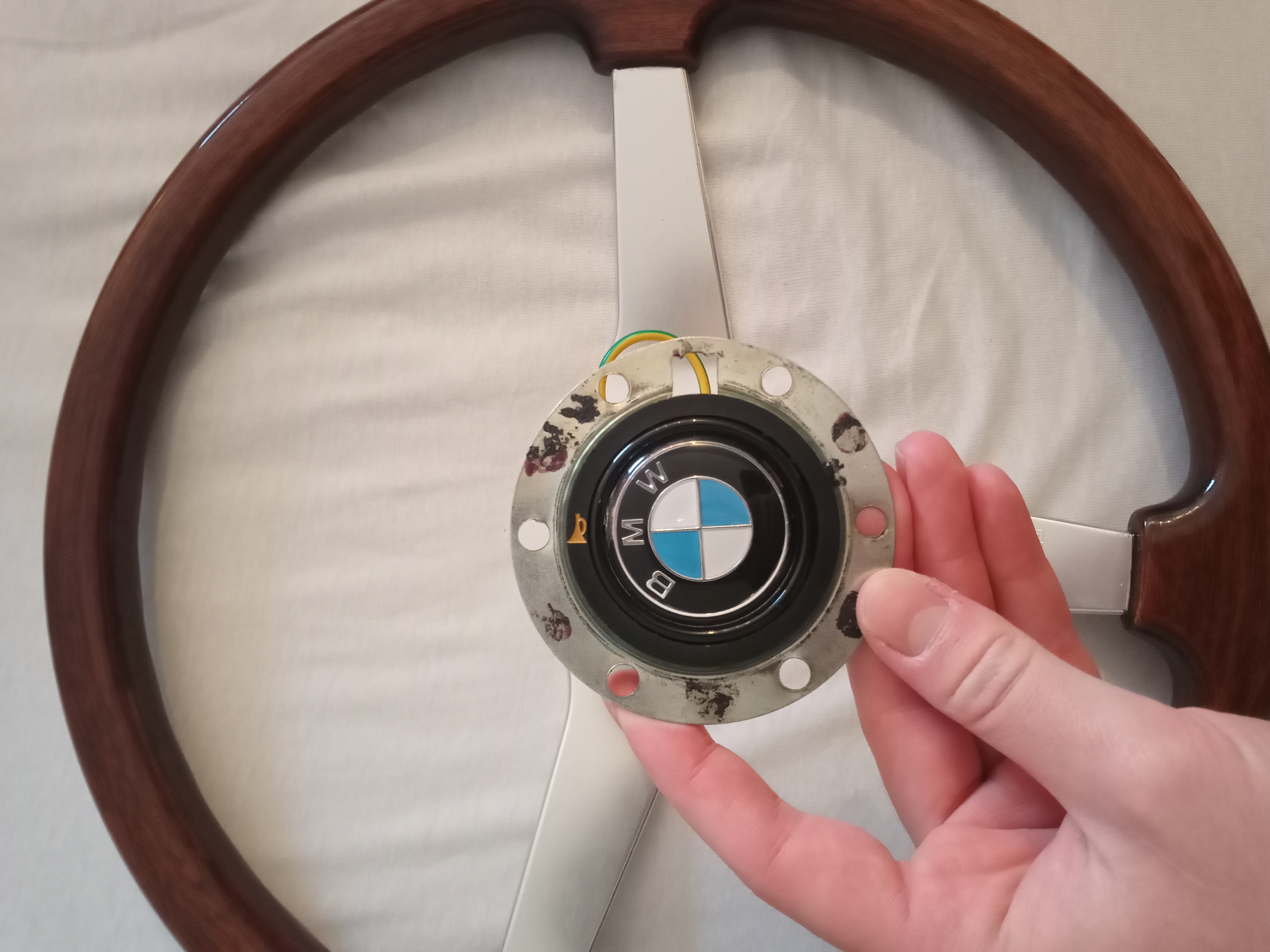 Prodam dobro ohranjen lesen momo volan. Made in Italy. Z delujočo hupo. Edina pomankljivost, na desni strani se je odluščil lak (2 ccm). Mene sicer med vožnjo ni motilo. Premer volana 370mm.